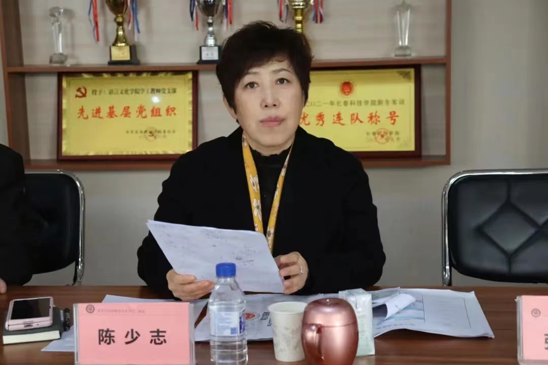 会上,语言文化学院院长、党总支书记陈少志首先代表我院对长春科技学院党委副书记宋学山一行的到访表示热烈欢迎。并就我院近几年各专业毕业生就业工作情况、毕业去向落实率情况及下一步工作计划进行了汇报。她表示就业工作是对人才培养质量的检验,我院高度重视就业工作,将开拓就业渠道、加强就业信息宣传、做好学生就业思想教育、开展重点问题咨询、鼓励学生针对自己的优势创新创业。我院教师要贯彻落实工作机制,加强精准辅导,提高我院考研、英语四六级通过率,来提升我院2023届毕业生就业质量,同时也希望各位领导能在就业工作上给予我院大力支持。