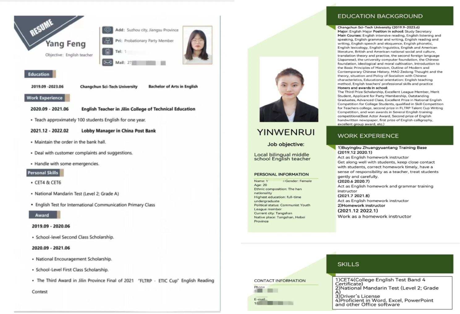本次活动包括面试文书和面试技能、制作简历和求职信、面试演练三部分。本次活动要求同学们要深入了解面试技巧,选择应聘岗位并制作简历和求职信,并进行模拟面试。在活动中,同学们积极参与,一张张各显特色的简历和求职信,都展现了同学们在制作过程中的用心。同学们用流利的英语与面试官进行交谈,谈吐举止自然得体,面对老师们的考验,同学们始终保持镇静,巧妙地解答了难题。