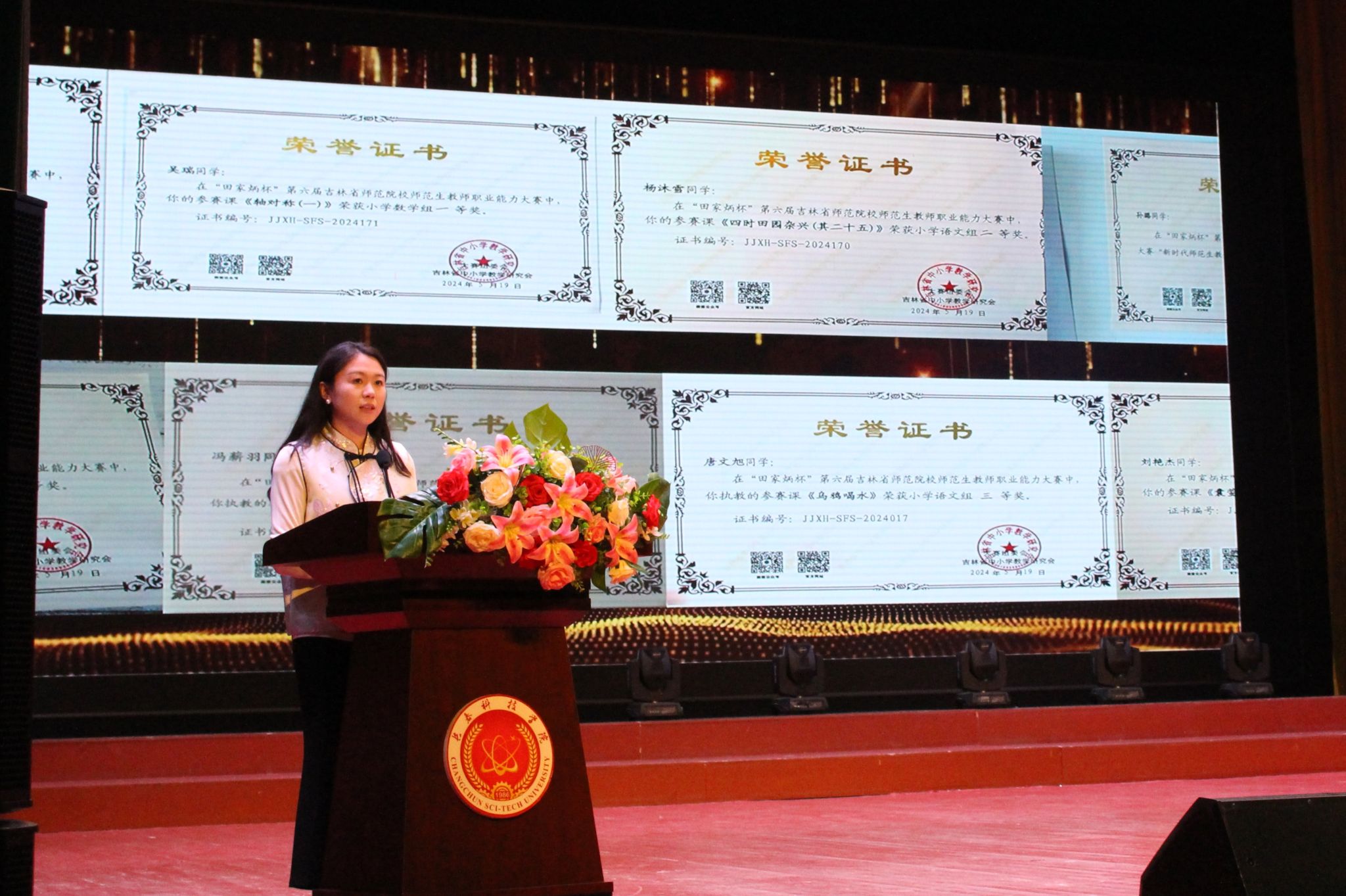 同时,大会还邀请了李晓睿、左心蕊两位获奖学生代表上台进行了授课展示,让新生同学们初步感受到了教育的独特魅力,也以此激励他们以榜样为目标,刻苦学习,再创辉煌。