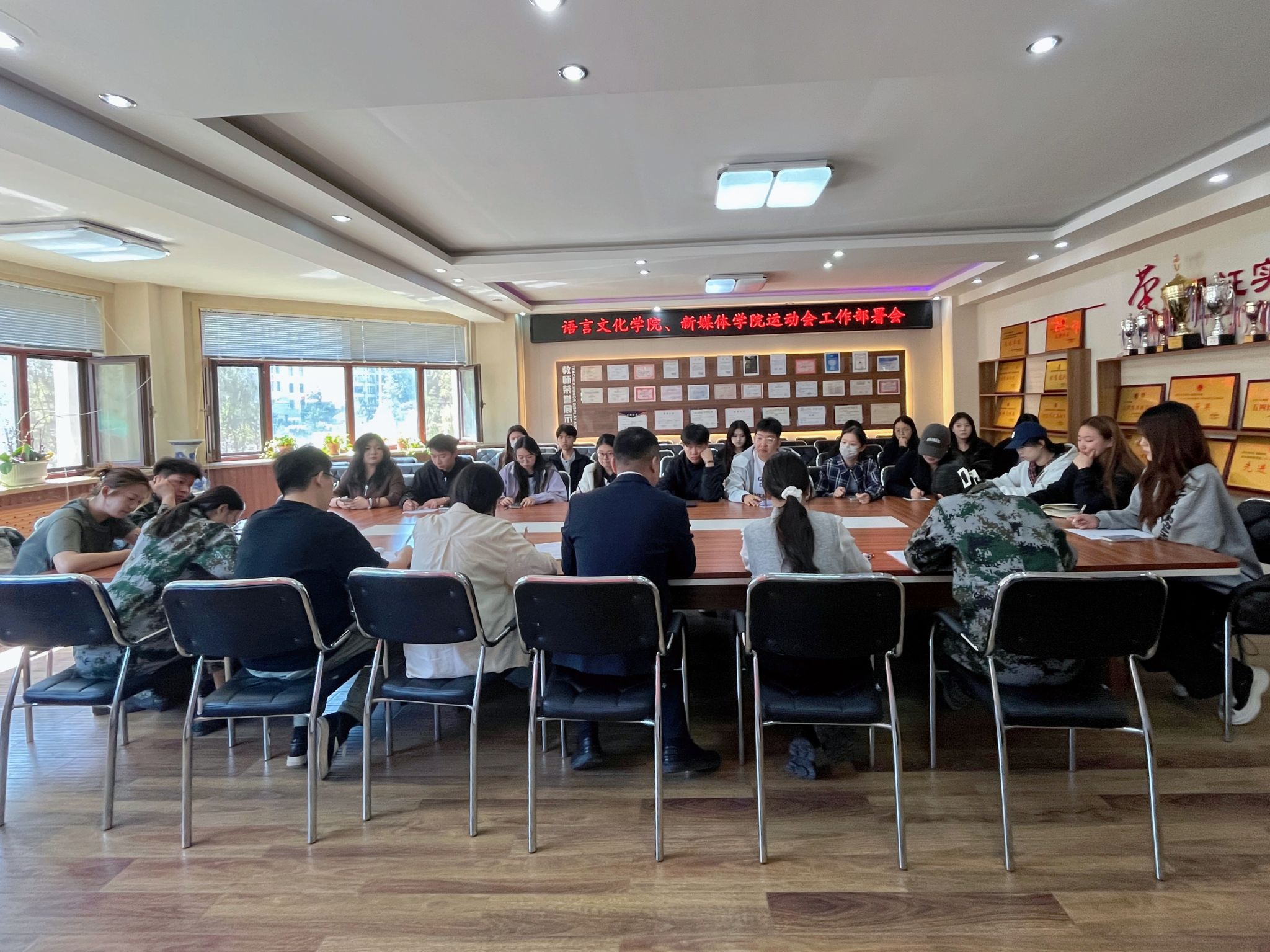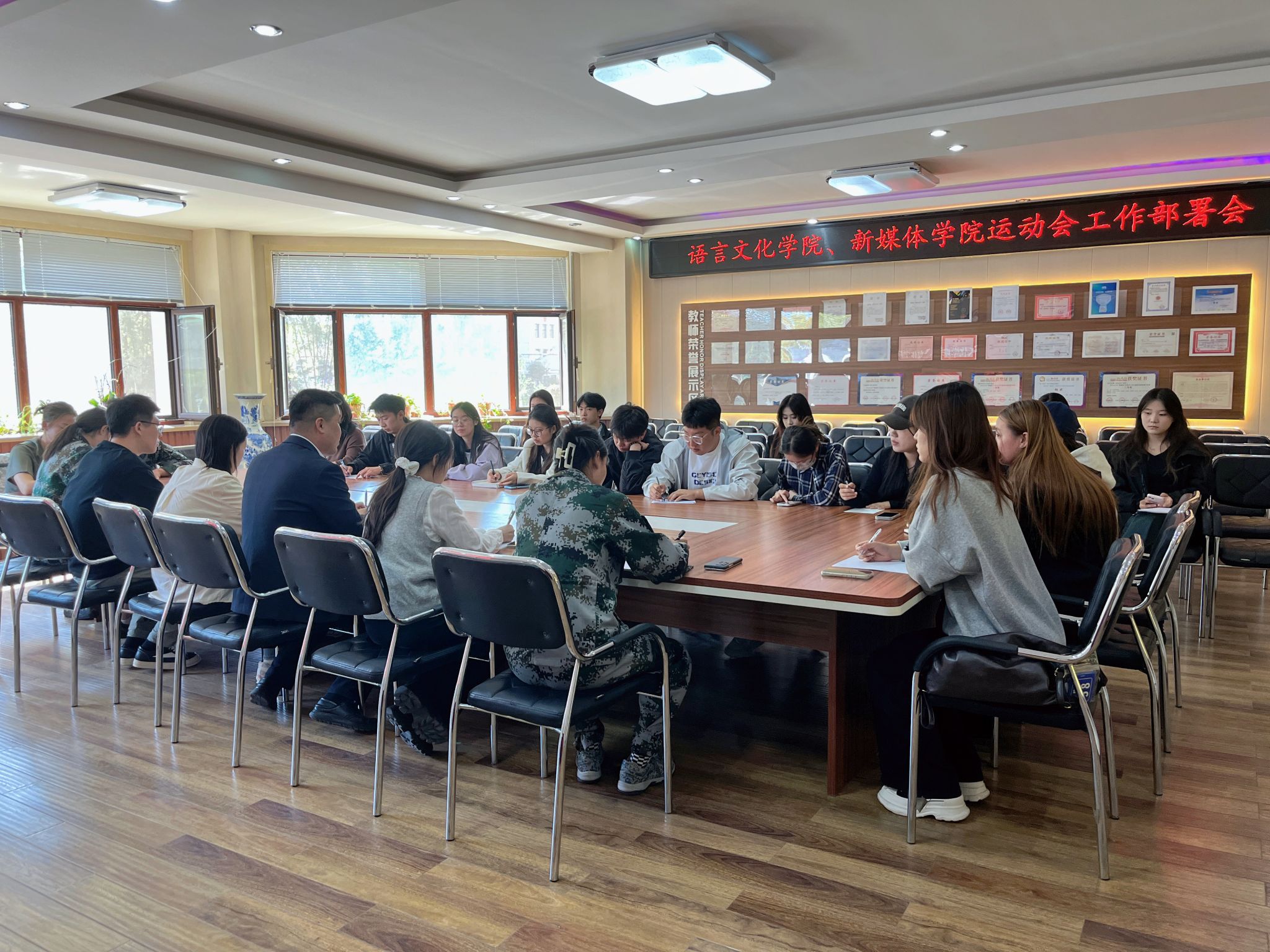9月17日中午,语言文化学院、新媒体学院在1217会议室召开秋季运动会工作部署会。党总支副书记张贺亮、学工办主任姜月、分团委书记张凯旋、全体辅导员及部分团学组织成员参加会议。会议由张贺亮主持。