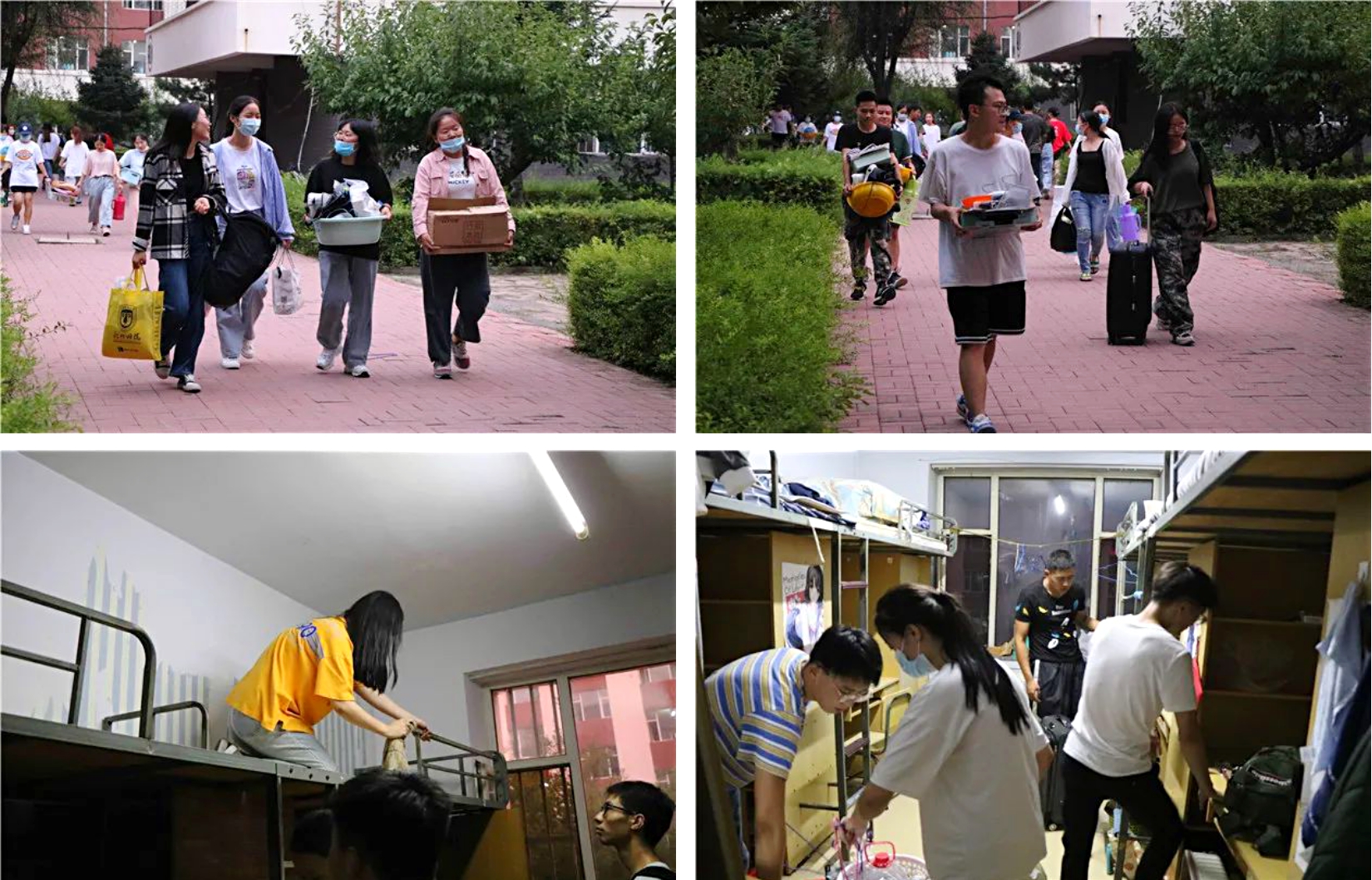 党总支副书记书记陈恭鑫、17级辅导员姜月及19级辅导员谷振宇也提前来到了12舍,查看寝室环境和配电等情况,并全程跟随学生搬寝室,不断关心和提醒同学们注意安全、不要落东西,维持着良好的搬运秩序。同学们有序地穿梭在6舍的6楼到12舍的2楼之间,尽管需要搬运的物品很多、很重,但是在同学们的互帮互助之下,在学院老师的关怀、领导下,全院各年级上下联动,顺利地完成了此次搬寝!