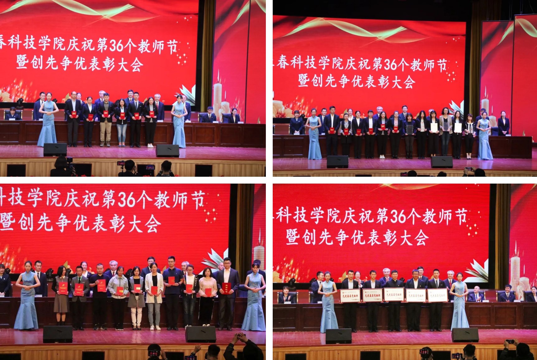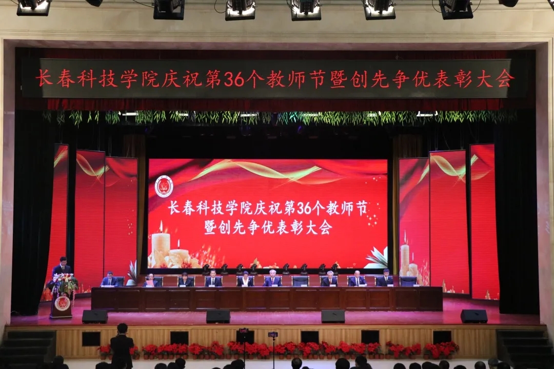 金秋九月,正是硕果飘香,暖意盈盈的季节。为了庆祝第36个教师节,传播尊师重教的良好风尚,推动学校各项事业的全面发展,嘉奖在工作中敬业爱岗和在工作中做出突出贡献的优秀教职工,激励全校教职工担当奉献、奋发有为,营造一个争先创优、见贤思齐的浓厚氛围,长春科技学院于2020年9月10日在东鳌国际会议中心开展了长春科技学院庆祝第36个教师节暨创先争优表彰大会,学校党政领导班子成员、各分院部、处室领导及全校教师参加了此次大会。