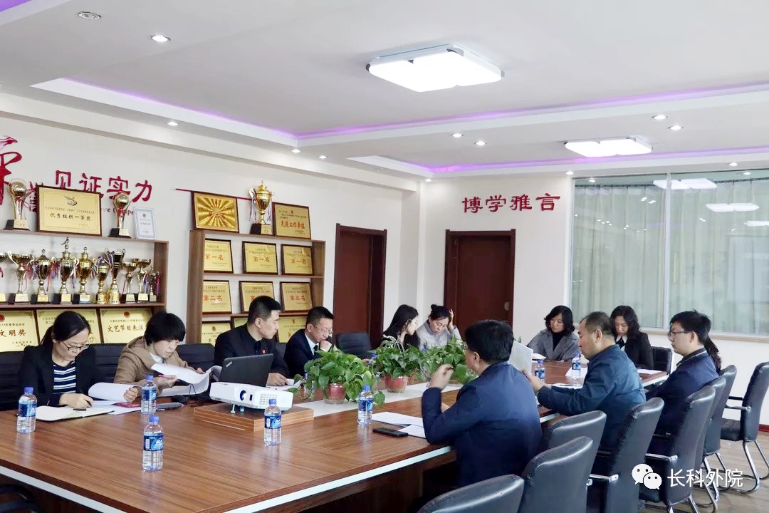 2019年4月11日下午两点半,创新创业学院杨继院长、谷春江老师、刘娟老师和冯嘉庚老师莅临一教219会议室对“互联网+”大学生创新创业大赛进行指导。语言文化学院林罡副院长、党总支副书记陈恭鑫老师、教学秘书付佳英老师、公共外语部主任王巍老师、日语系主任汪妍老师、汉语国际教育系副主任陶金红老师、朝鲜语系王蕾老师和英语系陈杰老师参与了本次会议。