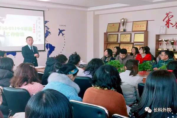 为了部署2019年春季学期重点工作,让全体教职工了解和明确学院下一步工作思路和发展方向,确保学院开学工作平稳有序地进行,长春科技学院语言文化学院于2019年2月23日下午一点半在第一教学楼二楼会议室举行了2018-2019学年第二学期工作会议,本次会议由林罡副院长主持,语言文化学院党总支副书记陈恭鑫老师,汉语国际教育系主任唐岩利老师,朝鲜语系主任金秀英老师,英语系主任谭宏伟老师,日语系主任汪妍老师等全体教职工老师参加了本次会议。