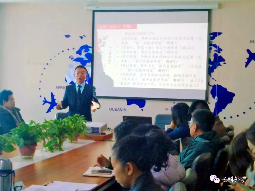 本次会议主要内容为强调新学期教学制度,重视学生迟到早退,跑课,逃课等现象,并且强调严肃考风考纪。另外,还强调了毕业论文指导工作,督促各位老师立德树人,担当教育新使命,在3月10日之前完成毕业论文详细批改和反馈,3月20日学校将进行中期检查。3月30日前,学生完成论文二稿写作,4月10日前,老师进行二次批改及反馈,4月30日前,学生完成论文终稿,教师进行终稿检查并评分。