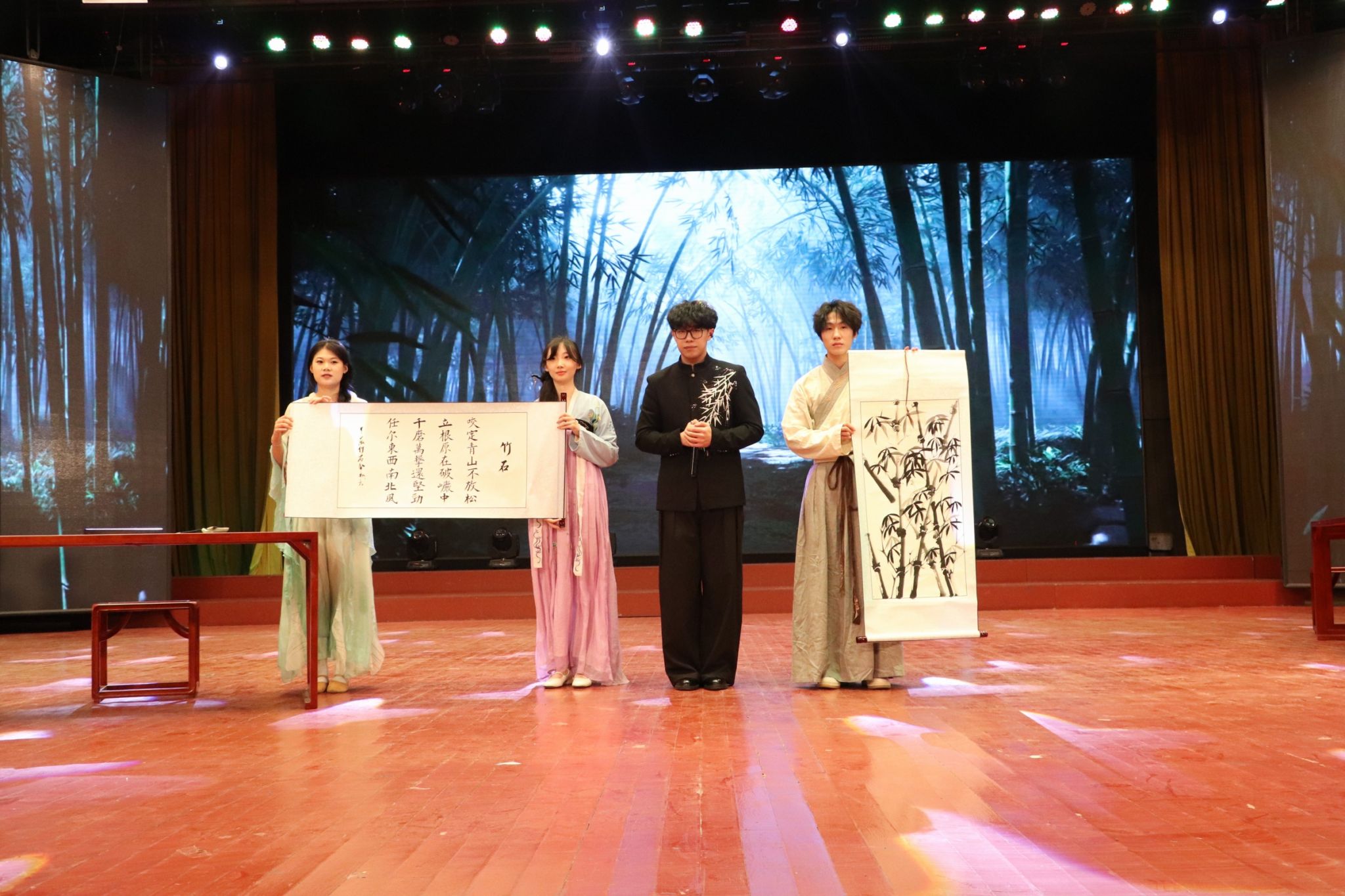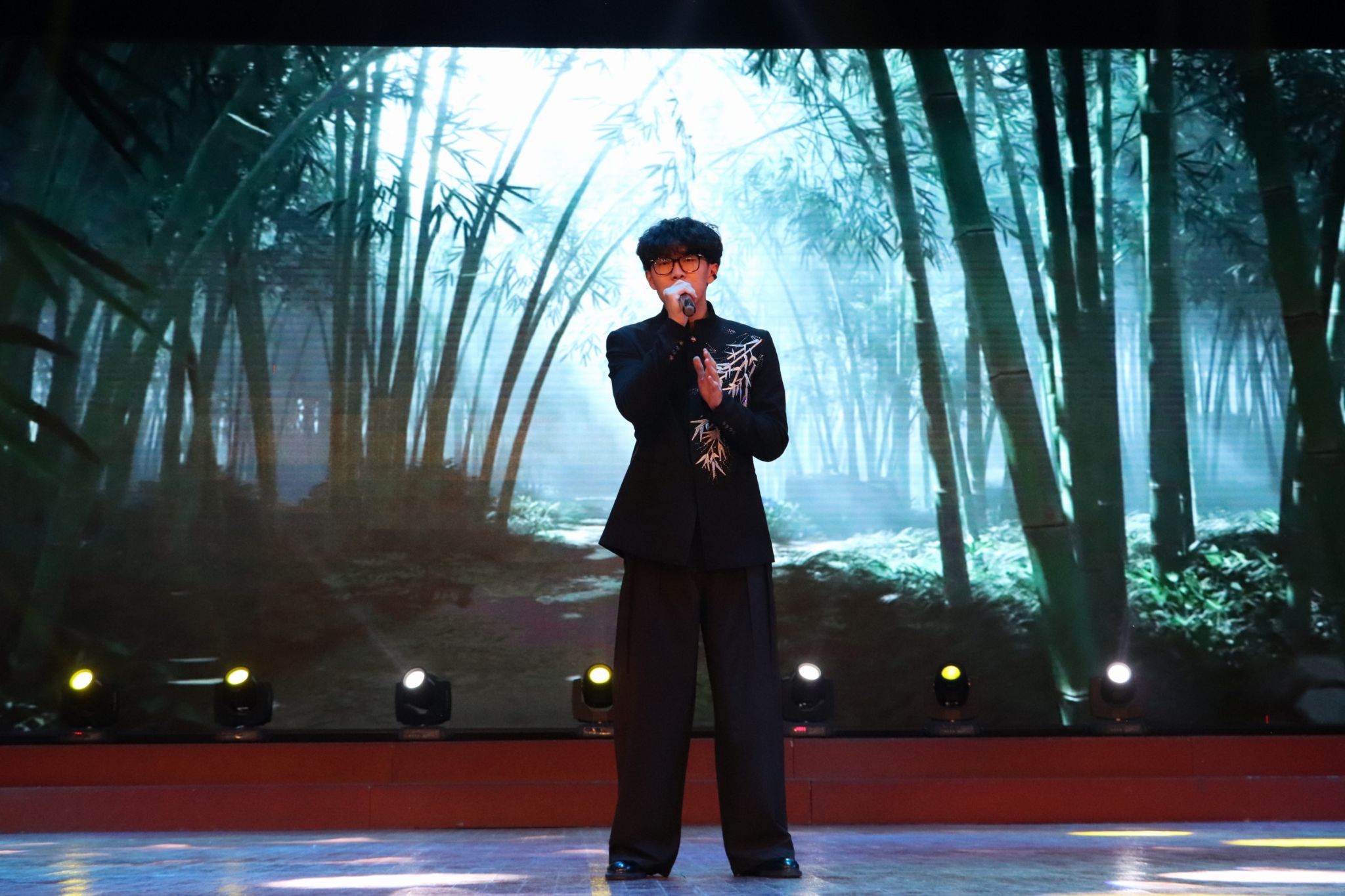 首轮比赛中,朱健语同学以一首《竹石》惊艳全场。他那富有穿透力的嗓音,将“千磨万击还坚劲,任尔东西南北风”的坚韧精神演绎得淋漓尽致。歌声时而如清风拂面,时而似惊涛拍岸,让现场观众深切感受到竹子顽强不屈的生命力。