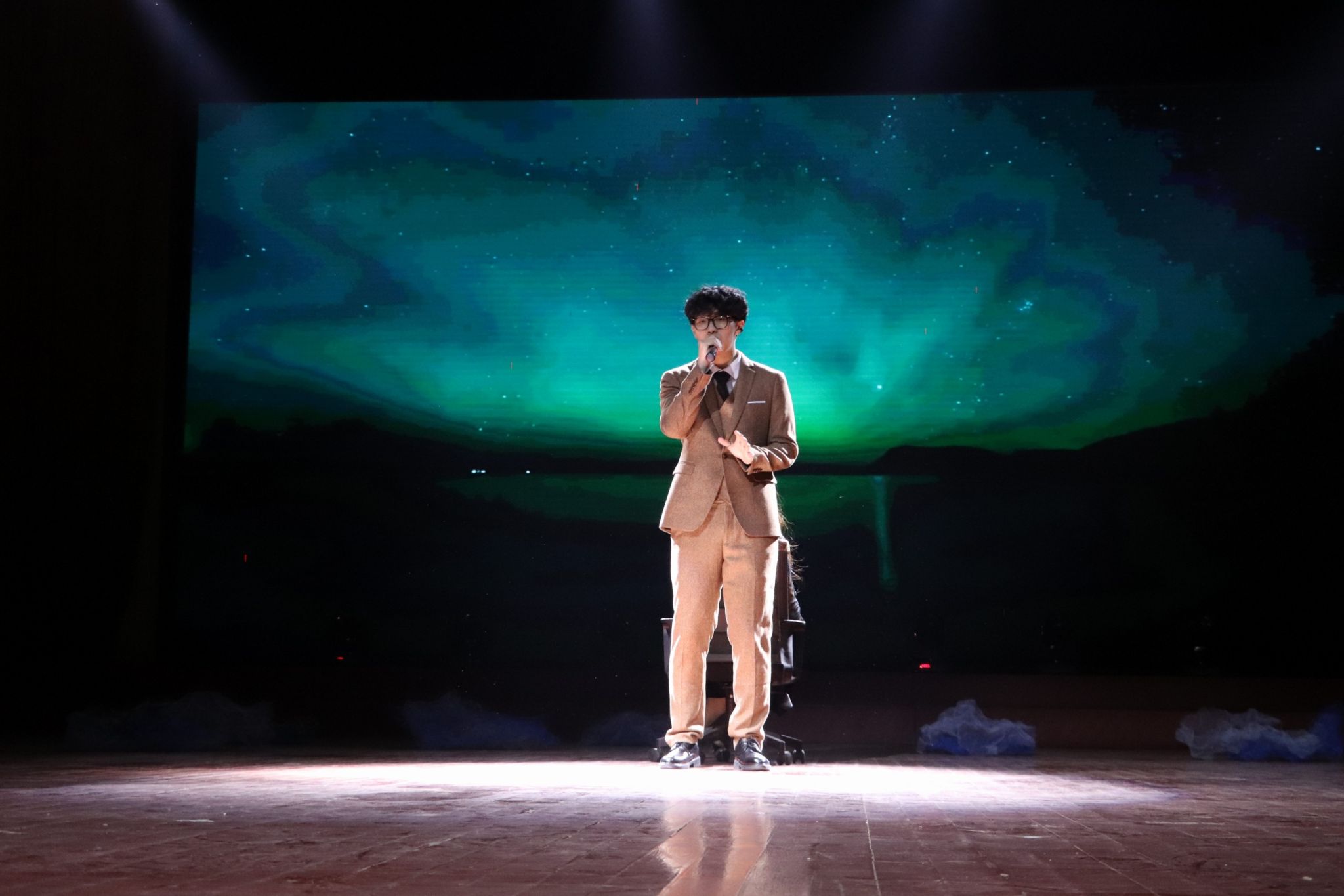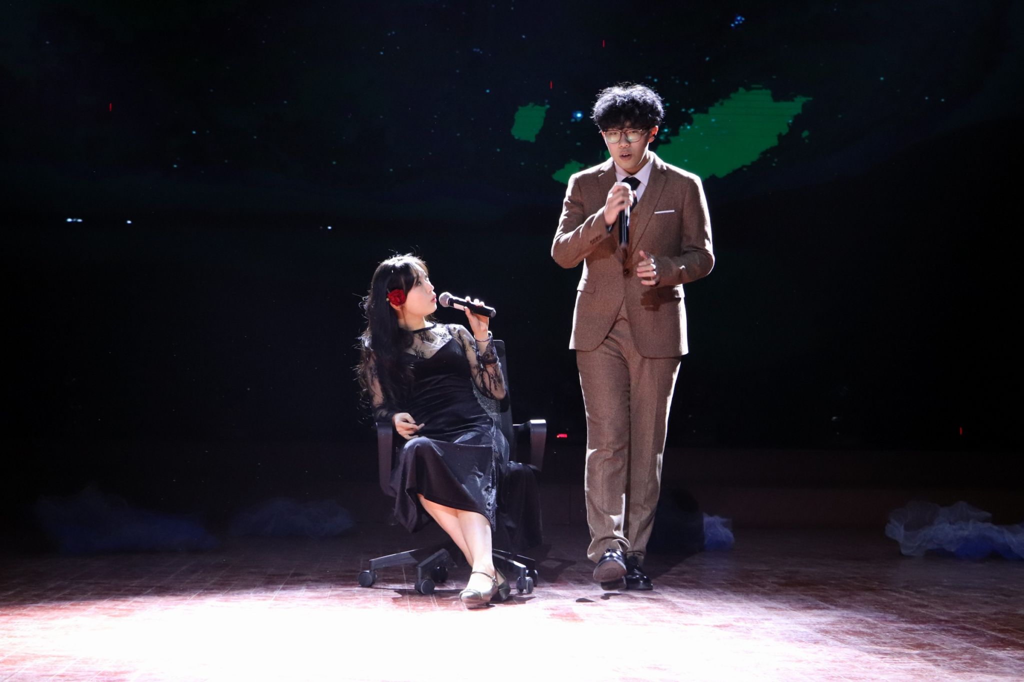 第二轮比赛迎来高潮,朱健语与韩墨老师联袂献唱流行歌曲《凄美地》。师生二人的嗓音完美融合,空灵婉转的演绎将歌曲中诗意的孤独与对远方的向往娓娓道来。每一个音符都饱含深情,每一句歌词都在诉说故事,带领观众沉浸在那梦幻般的音乐意境中。