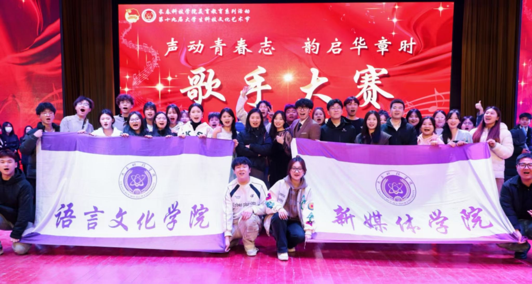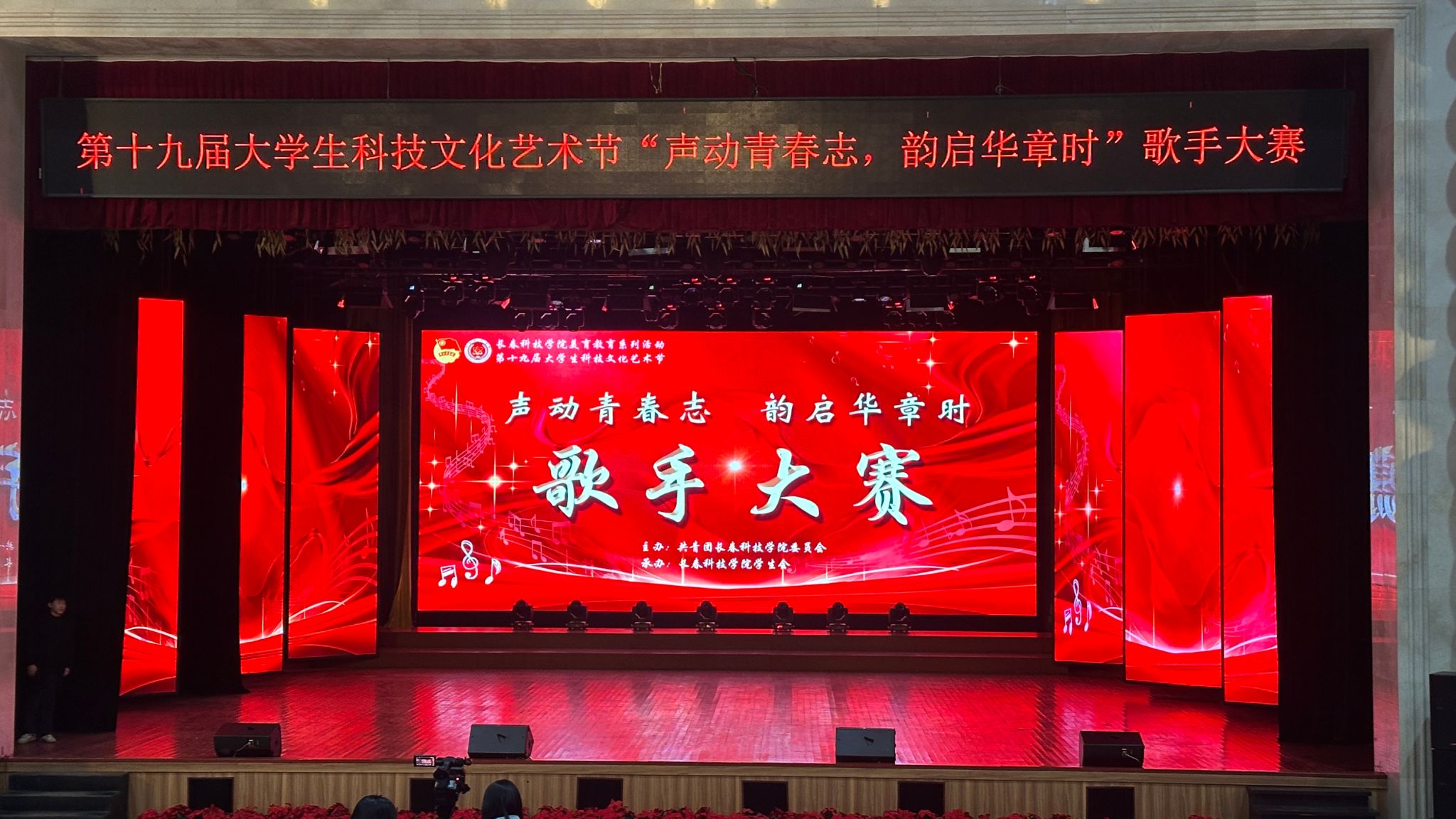 2025年3月27日晚,长春科技学院第十九届大学生科技文化艺术节"声动青春志,韵启华章时"歌手大赛在东鳌国际会议中心隆重举行。语言文化学院·新媒体学院2022级小学教育4班朱健语同学代表学院参赛,学院全体辅导员老师出席活动。