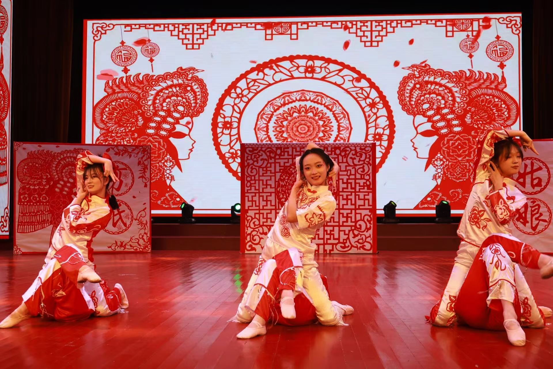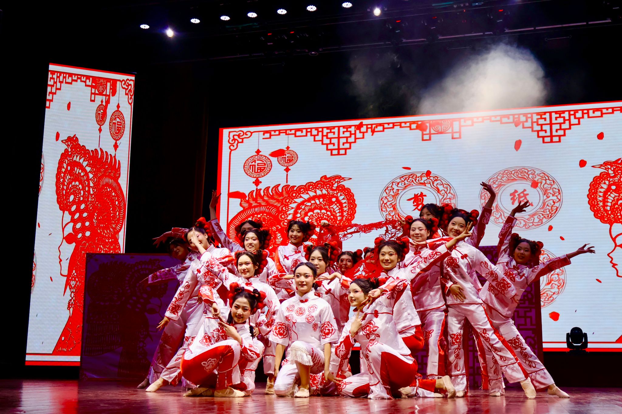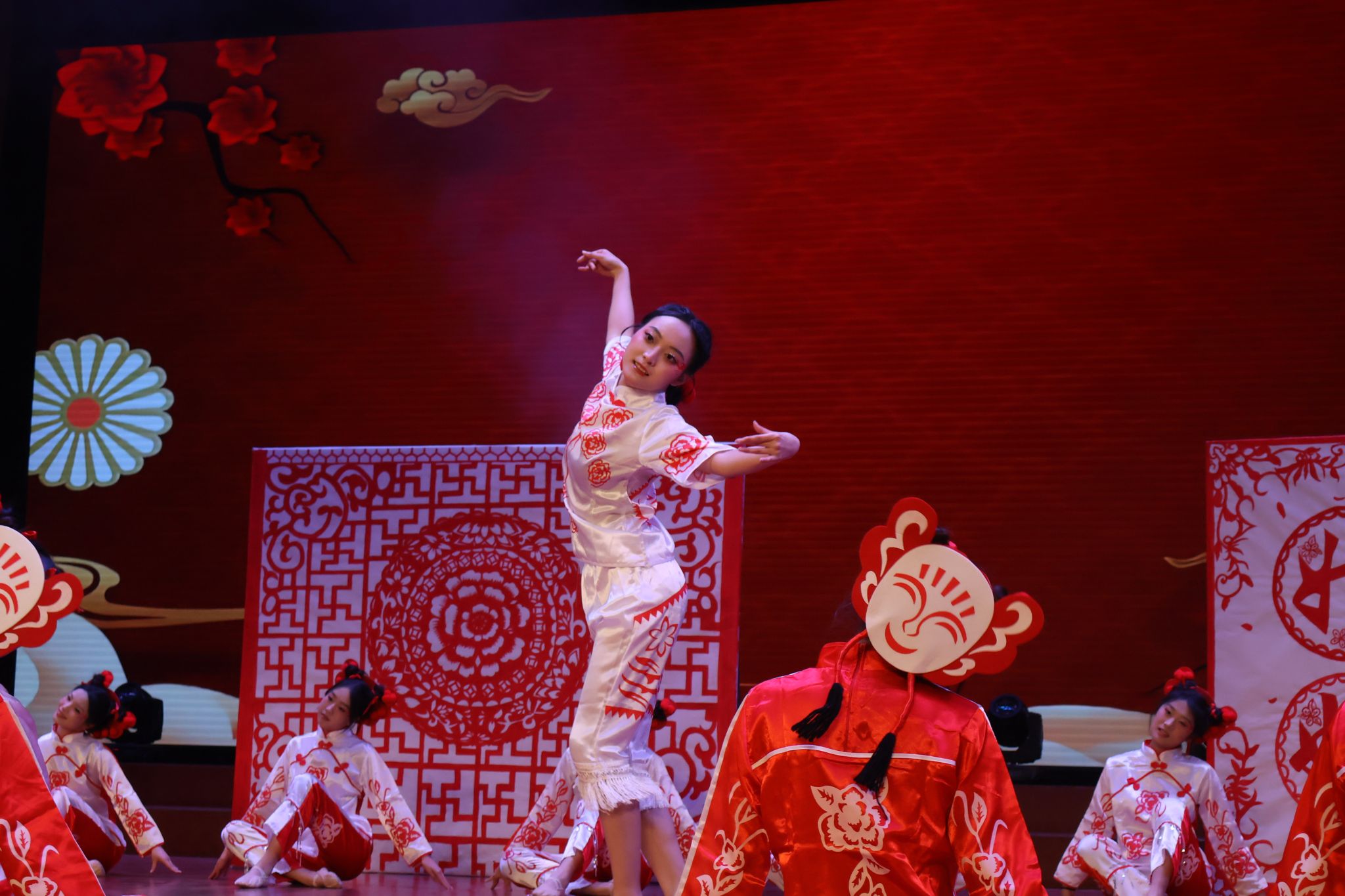 “巧手裁红纸,翩跹舞春风。”民族舞《剪纸姑娘》将中国民间剪纸艺术的非遗精粹与欢快的民间舞蹈完美融合。我院舞者行云流水般的优雅舞姿,将剪纸艺术的灵动与柔美展现得淋漓尽致,为观众呈现出一幅喜庆祥和、充满生机的民俗画卷。最终得分9.70,荣获民族舞第二名。