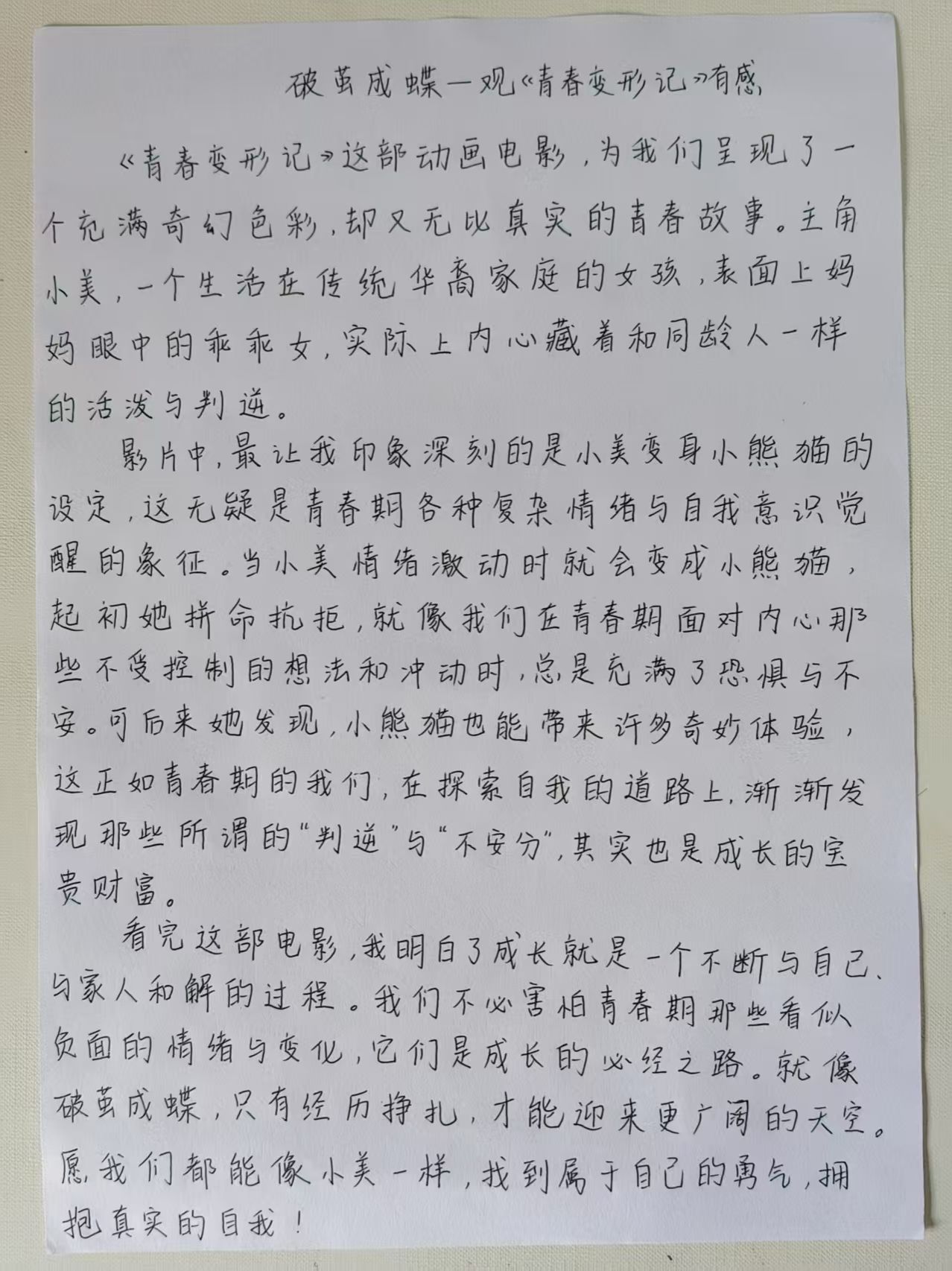 活动伊始,主持人从当代大学生常见的心理困扰切入,深入浅出地阐释了心理健康素养的重要性,并介绍了多种实用的心理调适技巧。随后,学生共同观赏了心理成长题材动画电影《青春变形记》。该片通过生动细腻的叙事,艺术化呈现了青少年在成长过程中面临的身份认同、情绪管理等心理议题。观影过程中,同学们全神贯注,不时会心而笑。