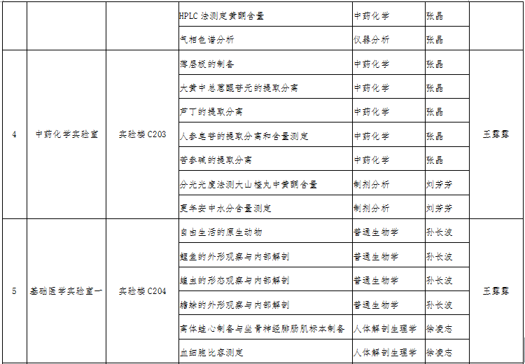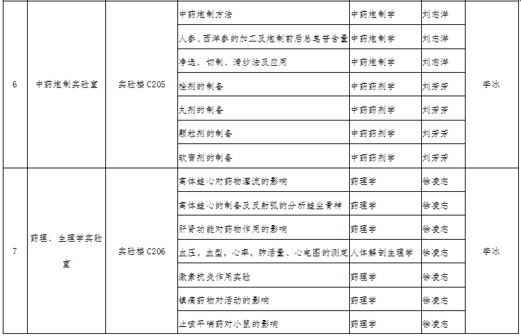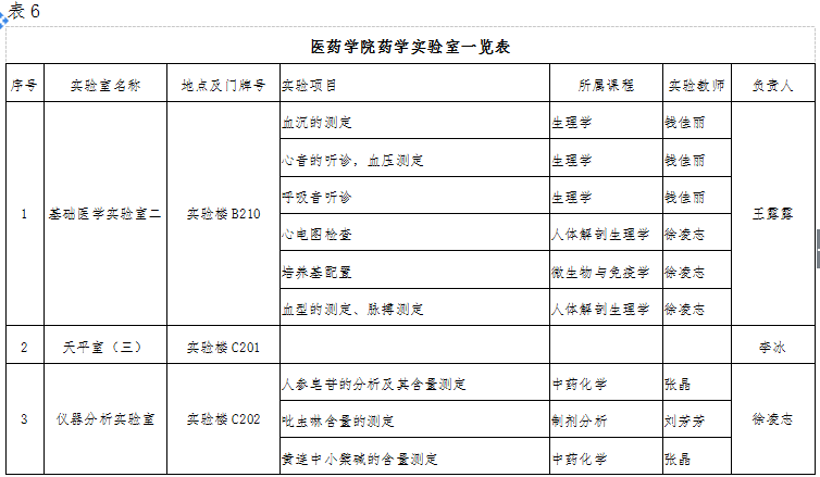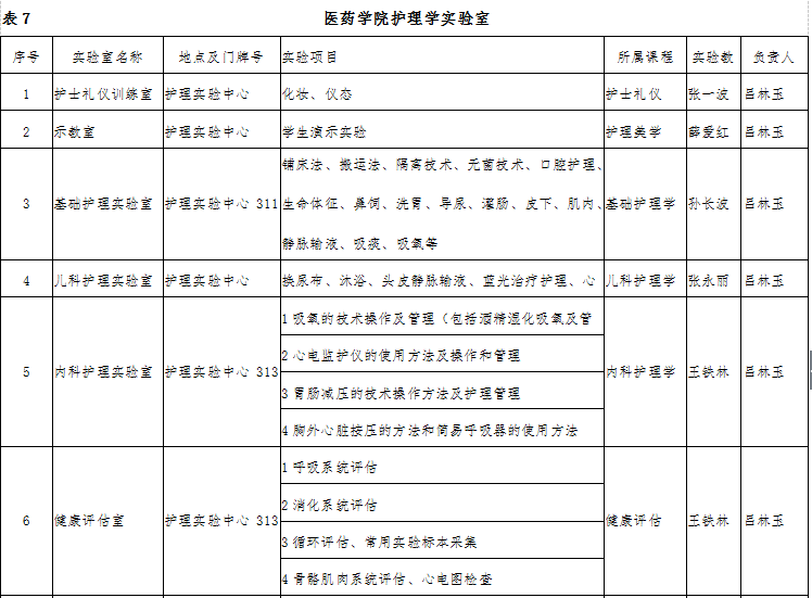具体实验条件如下:医学实验中心包括基础医学实验室二(实验楼B210)、天平室(三)(实验楼C201)、仪器分析实验室(实验楼C202)、中药化学实验室(实验楼C203)、基础医学实验室一(实验楼C204)、中药炮制实验室(实验楼C205)、药理、生理学实验室(实验楼C206)、中药专业准备室(实验楼C207)等8个;护理实验中心,包括示教室(306)、妇科实训室(309)、儿科实训室(309)、外科洗手室(302)、手术室、健康评估室(313)、基础护理实验室(311)等12个。