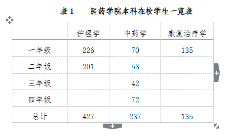 医药学院是长春科技学院下设分院之一,始建于2015年,目前有中药学、护理学、康复治疗学、中医学4个专业,共有在校生799人(见表1)。其中,中药学专业2005年开始招生,曾隶属于生物食品学院,于2015年划分到医药学院。护理学专业2015年开始招生、康复治疗学专业2016年开始招生、中医学专业2017年开始招生。