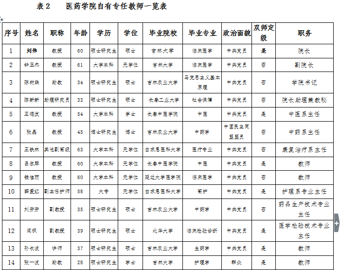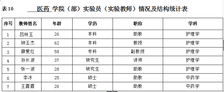医药学院高度重视教师队伍结构的优化,在聘任教师时,注重学历、学位、专业技术职务、学缘、年龄等,目前形成了老中青相结合的比较合理的师资结构。