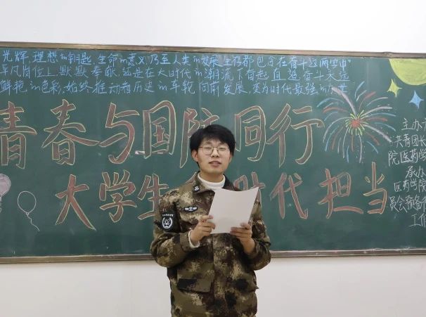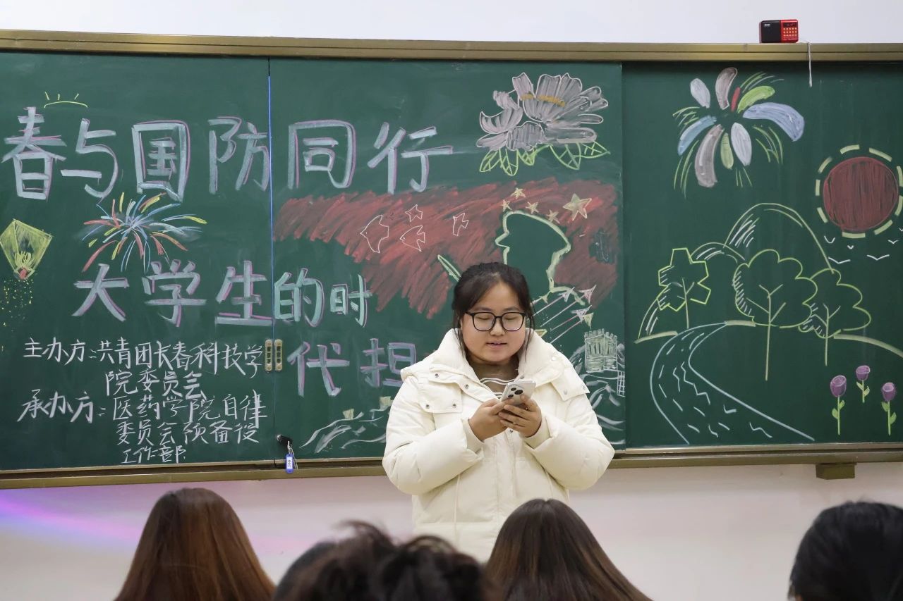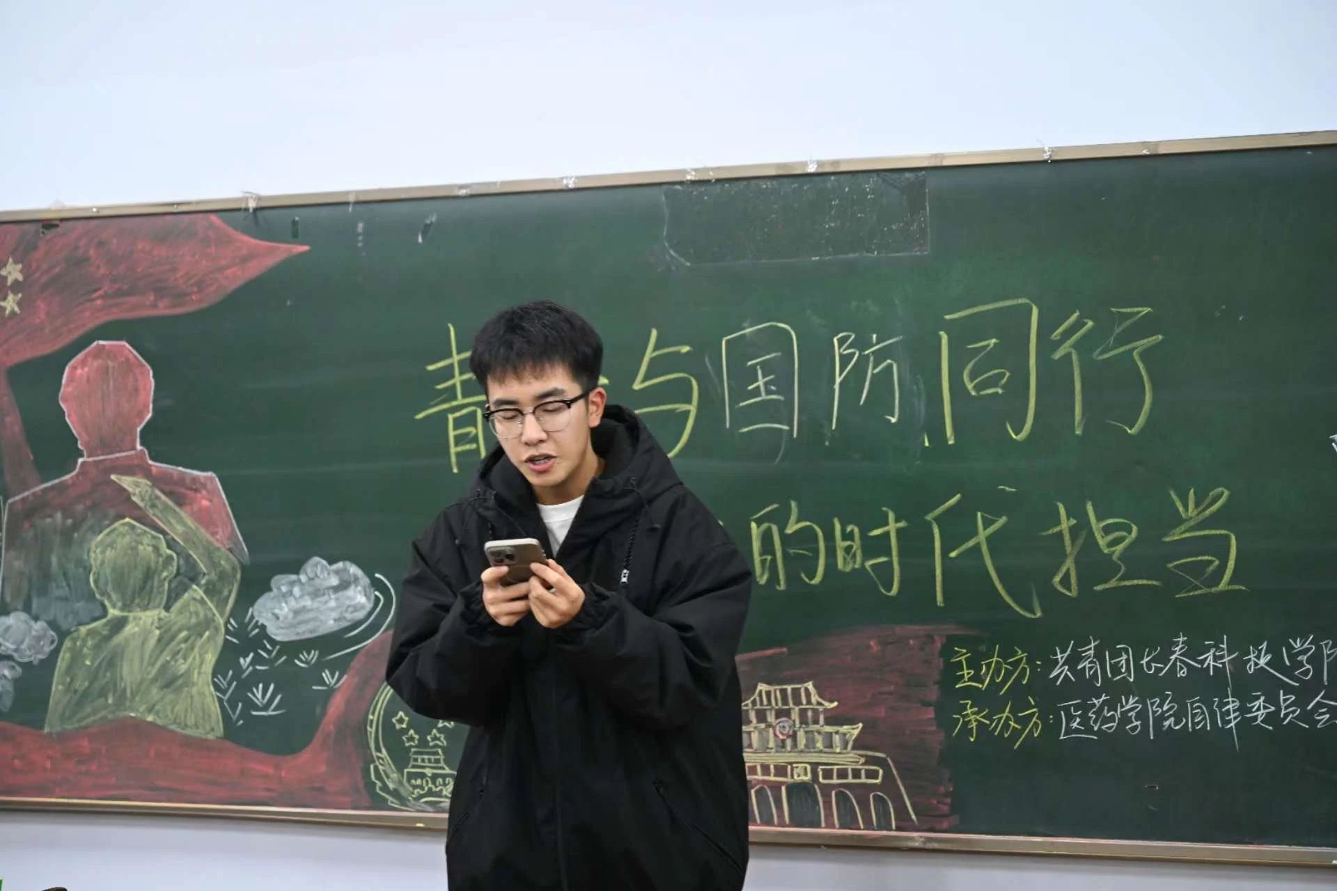 为增强大学生国防意识、培养爱国精神、提升综合素质,拓宽学生的知识视野、增强学校的文化建设,医药学院于11月25日18:00组织开展主题为“青春与国防同行,大学生的时代担当”主题班会。