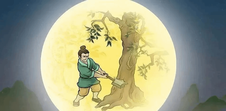 吴刚登上月宫折桂,据唐代小说《酉阳杂俎》中说,是因为西何人吴刚修仙犯了错误,才罚他去伐月中的桂树。这桂树随砍随长,永远也砍不断。李白在《赠崔司户文昆季》一诗中写道:“欲斫月中桂,持为寒者薪。”