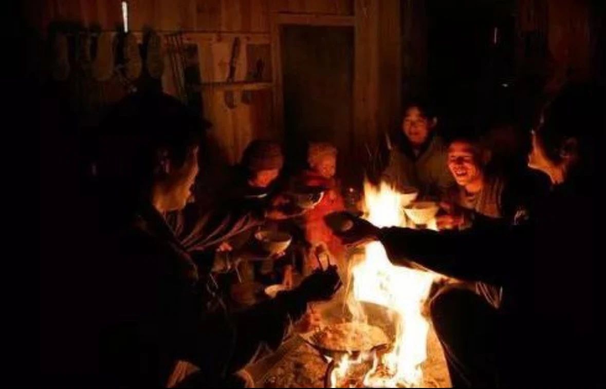 一家人围着火炉,煮茶烤美食,聊聊去年的成长,说说来年的期盼,其乐融融。