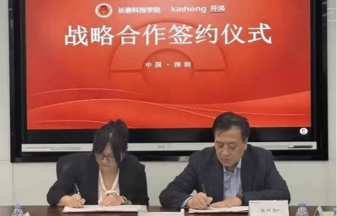 深开鸿公司针对我校实际需求,提出了“技术赋能+项目驱动”的合作模式。该模式旨在通过先进技术的注入与实际项目的牵引,推动双方在人才培养、科研创新等方面的深度合作。在交流过程中,深开鸿公司详细介绍了其人才培养思路——以技术为坚实底座、以教材为核心、以场景为依托、以就业为导向,为学生构建起扎实的知识与技能体系,确保人才培养与社会需求紧密对接。经过深入交流与探讨,双方就上述合作内容达成初步共识,为后续合作的开展奠定了坚实基础。最终,张校长与深开鸿黄总代表校企签署战略合作协议,标志着双方正式携手推动鸿蒙技术人才培养与产业应用落地。