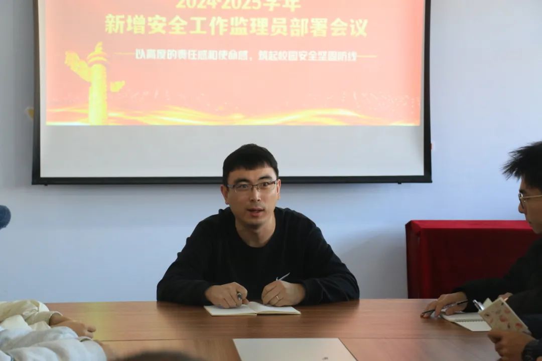 会议最后,杨魁老师对全体安全工作监理员提出了殷切希望。他希望大家能够以身作则,用自己的实际行动为同学们树立良好的榜样,带动身边的每一个人都重视安全工作。同时,要鼓励大家积极参与到校园安全保障工作中来,形成 “人人讲安全、事事为安全、时时想安全、处处要安全” 的良好氛围。