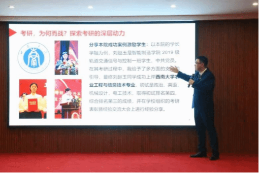随后,分享会上,杨魁老师以深厚的教育情怀与专业积淀,围绕考研全流程进行了系统性阐述。他首先结合当前高等教育发展趋势,深入解读了考研对于个人成长成才的重要意义,鼓励同学们以长远眼光审视升学选择,将考研作为提升专业素养、拓宽人生格局的重要契机。