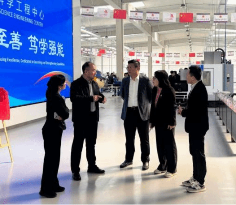 会后,杨继陪同来宾深入工程训练中心、大数据/人工智能实验实训室及智能感知交互创新中心、计算机、电工电子、轨道交通实践教学场地,向来宾全面地介绍了我校基于工科教学、工程实践、专业创新等实验、实训教学条件及硬件建设。在工程训练中心,向企业客人介绍了我校3D打印、增材制造、数控加工方面的赛创成果,以及中华职业技能大赛备赛情况。在机器视觉工程协同创新中心,校企双方围绕“AI+工业检测”技术场景展开深度对话,企业领导对学院产学研协同创新,实践教学条件和设备的先进情况及实践育人模式给予高度评价。