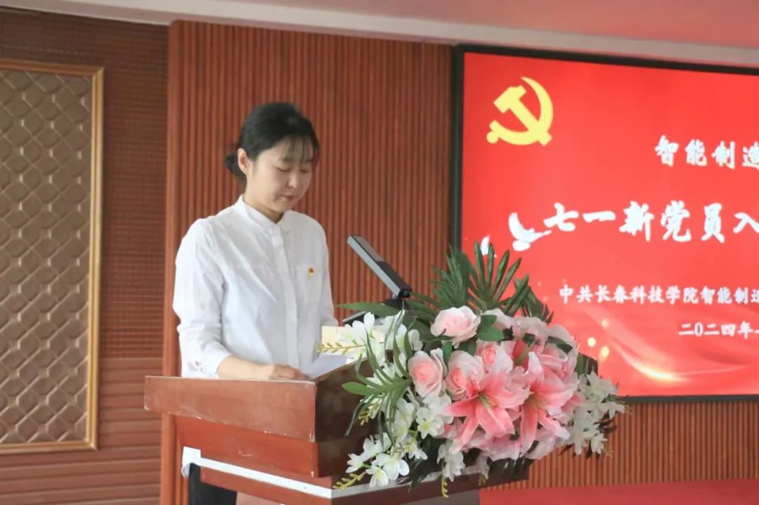 最后,智能制造学院学生支部书记、学工办主任赵雪老师对新党员同志们提出几点希望和要求。希望他们始终牢记入党誓言,崇尚严于律己的品德,自觉遵守党章党规党纪,不断提升党性修养和思想境界,不断加强理论学习,提高政治素养,让每一位党员都能在党组织中得到锻炼和成长。