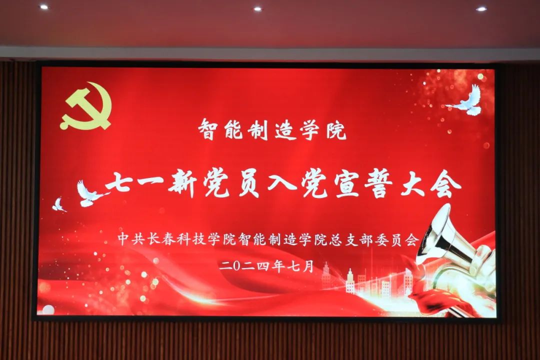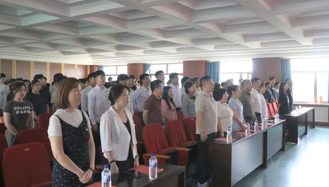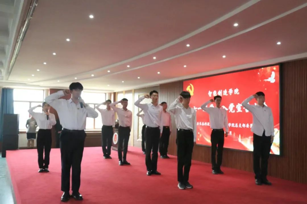 为庆祝建党103周年,7月1日,智能制造学院在一教六楼报告厅召开七一新党员入党宣誓大会。参加此次会议的有学院党总支书记、院长杨继,党总支副书记、副院长张帅,党总支纪检委员、副院长隋庆茹,信息教师支部书记郝允慧,学生支部书记、学工办主任赵雪,以及学工办、各教研科室党员教师,全体在校学生党员、入党积极分子。
