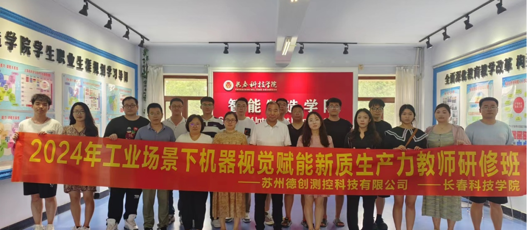 为深入贯彻落实 2024 年两会精神,推进智能制造,加快发展新质生产力,推动智能制造的现代化升级步伐,培育出一批既具创新精神又富实践经验的复合型技术技能人才。在吉林省教育厅教师发展联盟与中关村泛亚机器视觉技术产业联盟的强力支撑下,长春科技学院携手机器视觉产业联盟(CMVU)以及苏州德创测控科技有限公司,联合举办了 2024 年工业场景下机器视觉赋能新质生产力教师研修班。该研修班于 7 月 22 日在长春科技学院智能制造学院机器视觉创新与应用实验室盛大开班,并于 7 月 26 日完美落幕,为相关领域的教师搭建了弥足珍贵的学习及交流平台。