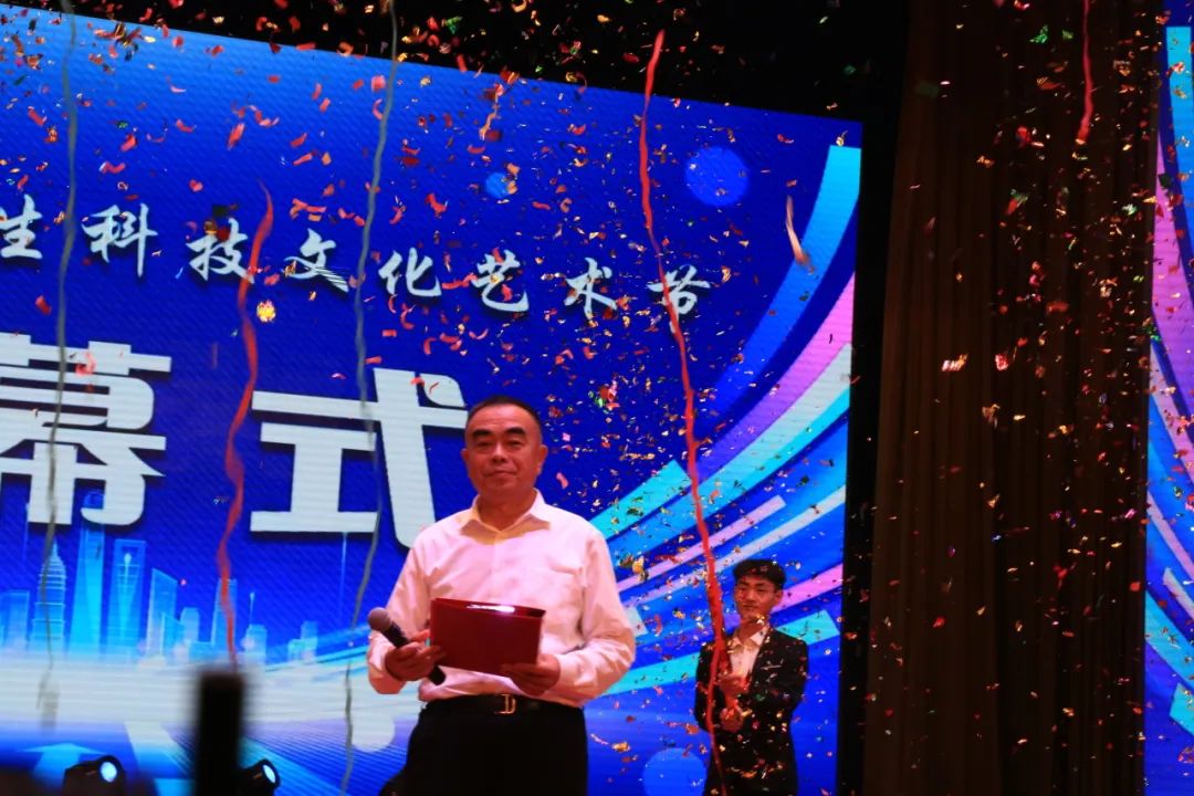 在颁奖后,张电达董事长宣布第十九届大学生科技文化艺术节正式开幕。