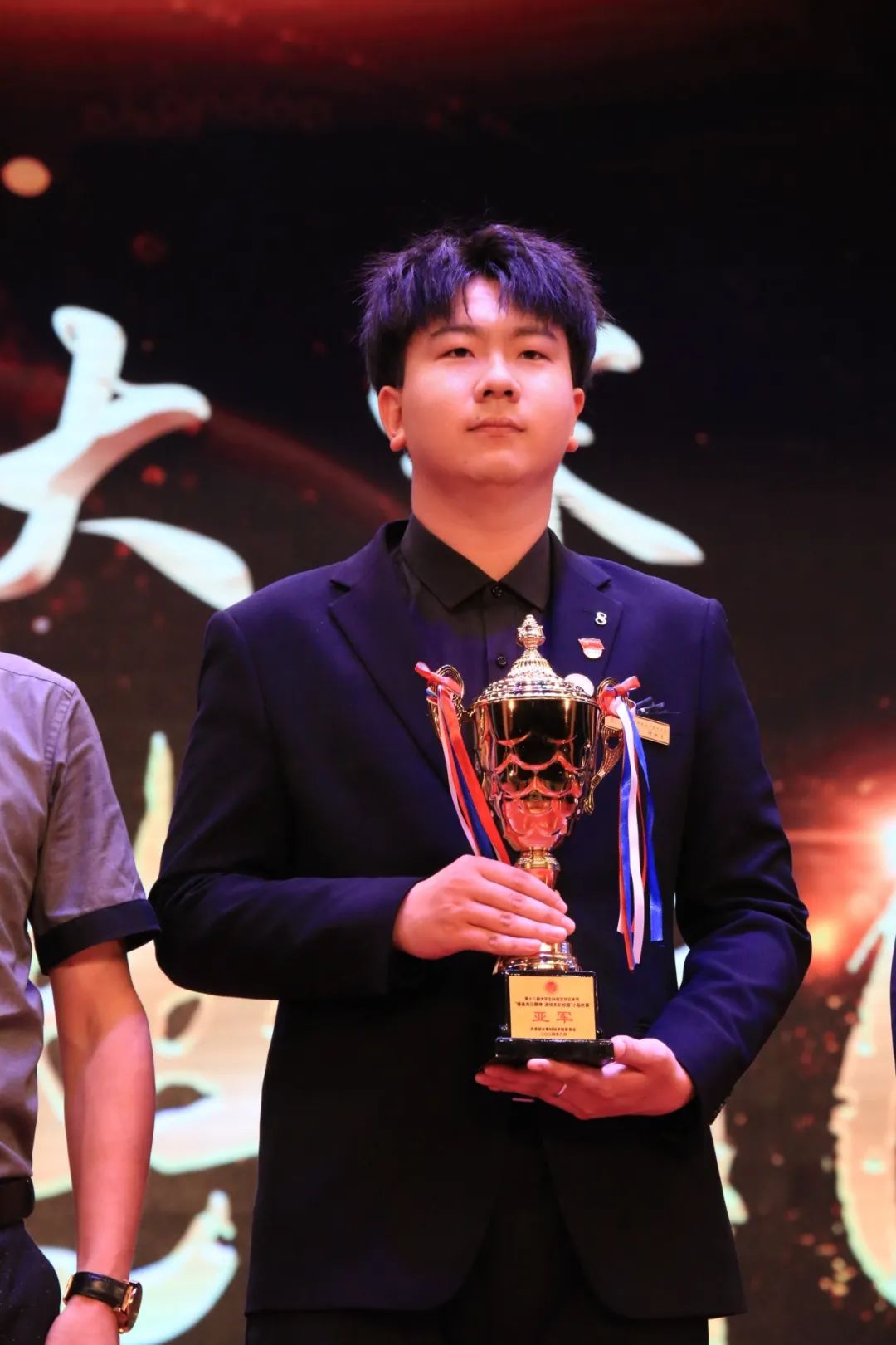 灯光璀璨,聚焦于舞台中央,主持人宣布第十八届大学生科技文化艺术节颁奖典礼正式开始。