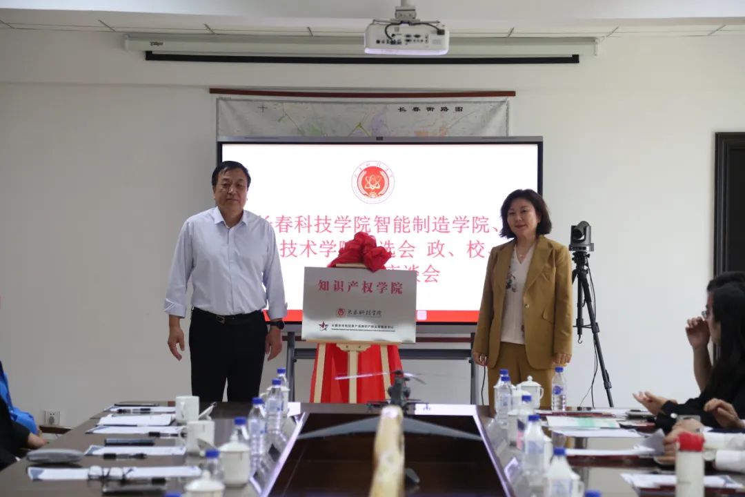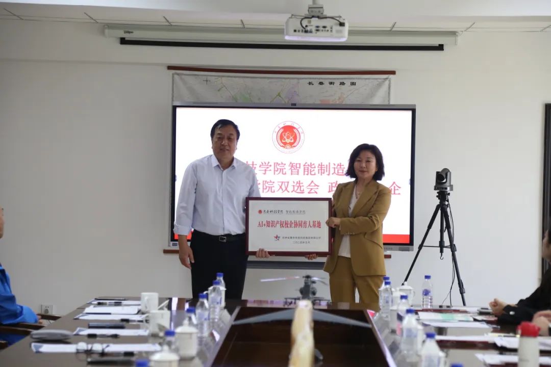 随后,学校与吉林省菁华科技有限公司签署了“知识产权学院”协议并举行了揭牌仪式。