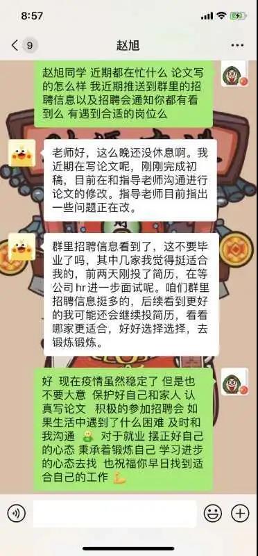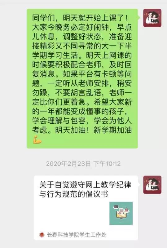 疫情还未结束,在这个特殊的开学季,在师生不能见面的日子里,辅导员始终坚守岗位不动摇。面对疫情,辅导员始终保持战时状态,认真研读有关疫情的文件通知和各种防控知识,做到每日关注疫情数据、每日摸排学生情况、每日问候重点区域学生、每日转发官方信息等。