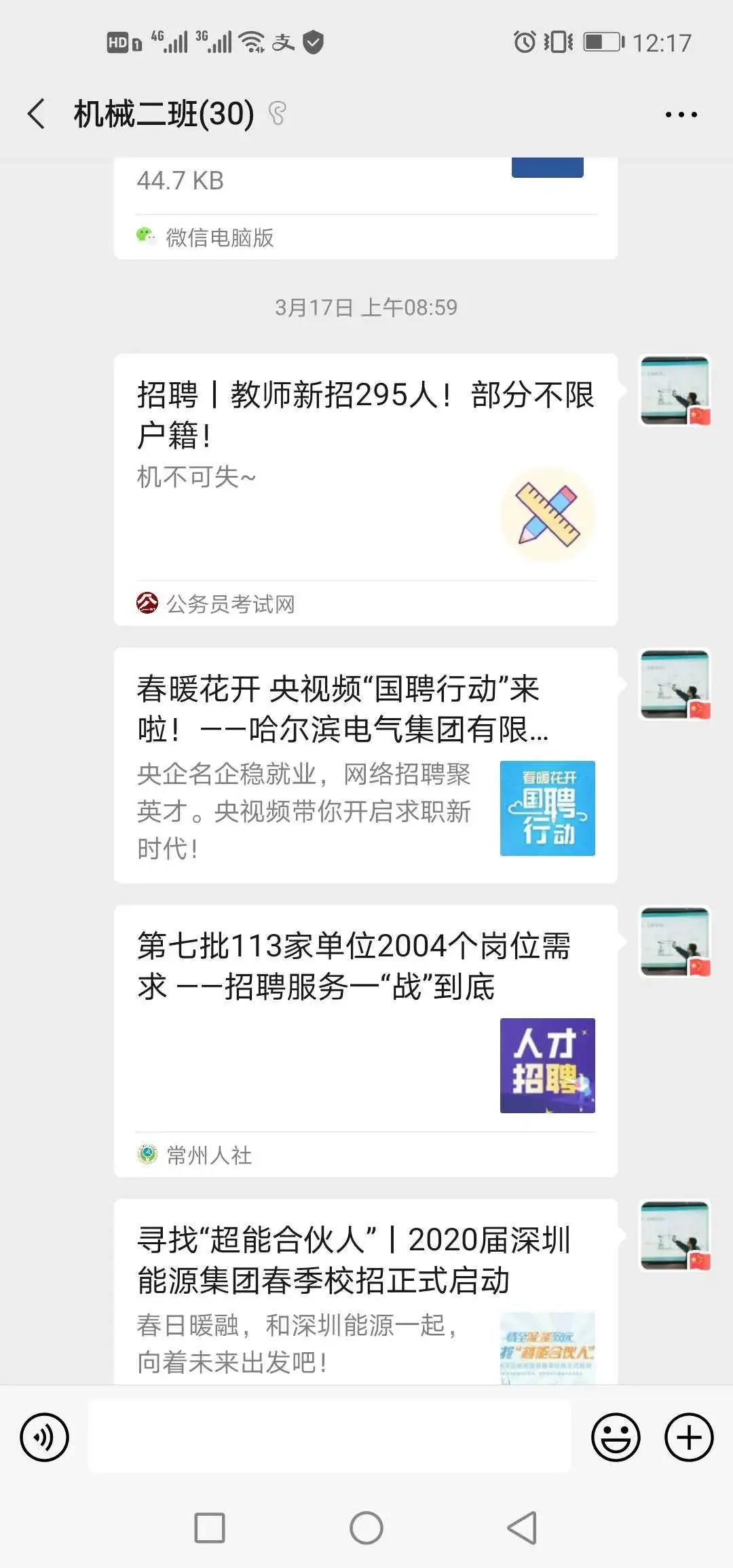 全网筛选整理优质企业的招聘信息,通过微信、QQ群及时传达给每一名同学,组织学生党员、学生会主要干部,成立就业信息搜集小组,加大学生就业信息的获取量,及时在发布并转发招聘信息,全力促进学生平稳就业。