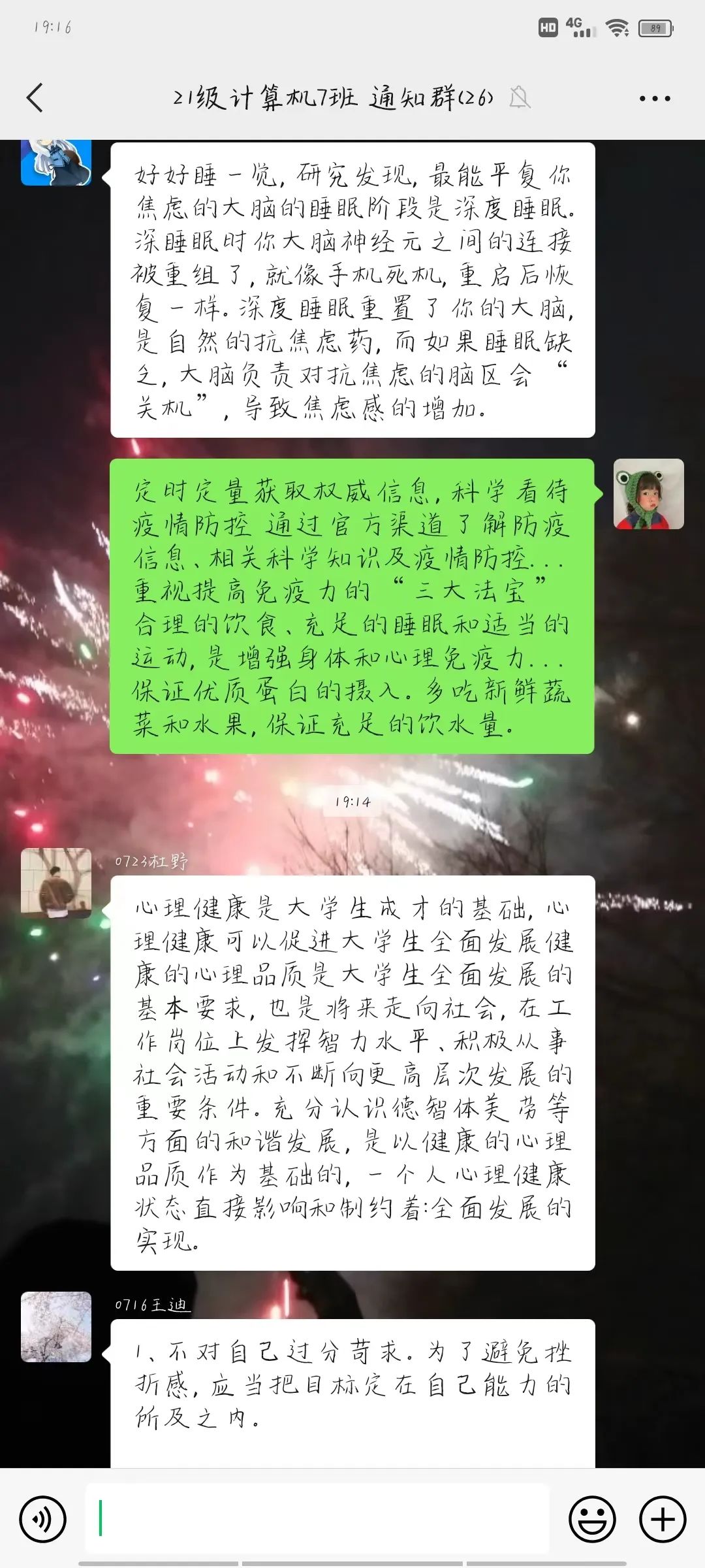 此次班会中,大家都积极参与其中,尽情发表自己的见解,虽然疫情使我们相隔万里,但有着关心彼此的同学们,烦恼便不足畏惧。