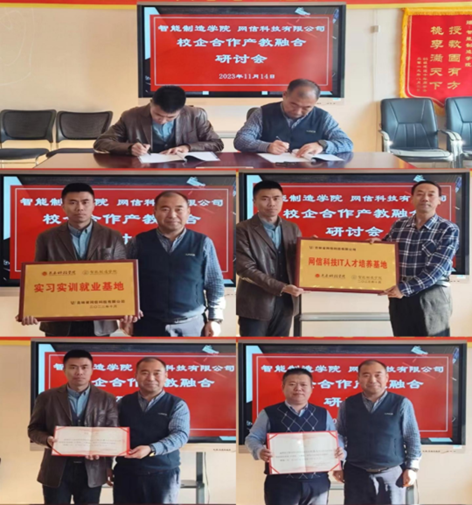 (三)利用社会资源,广泛联络用人单位,加强毕业生就业市场建设,建立就业实习一体化基地。利用寒暑假,学院组织院领导、专业主任和毕业班辅导员,积极开展访企拓岗工作,落实集团及学校校企合作,产教融合工作部署,开发建设更多更优质的校内外实习实训就业基地,确保我院专业学生有足够的实习实训就业资源,提高毕业生就业对口率和就业质量,在完成好2023届毕业生就业工作的前题下,提前布局2024届毕业生就业工作。2023年智能制造学院与吉林省网信科技有限公司、苏州德创测控科技有限公司建立校外实习基地,与浙江象山县八家企业(浙江一元科技集团、亚资科技股份有限公司、浙江飞科电器股份有限公司、浙江宏博汽配有限公司、丽水华企正邦自动化科技有限公司、浙江青风环境股份有限公司、浙江臻航实业集团有限公司)联合召开校企合作研讨会。