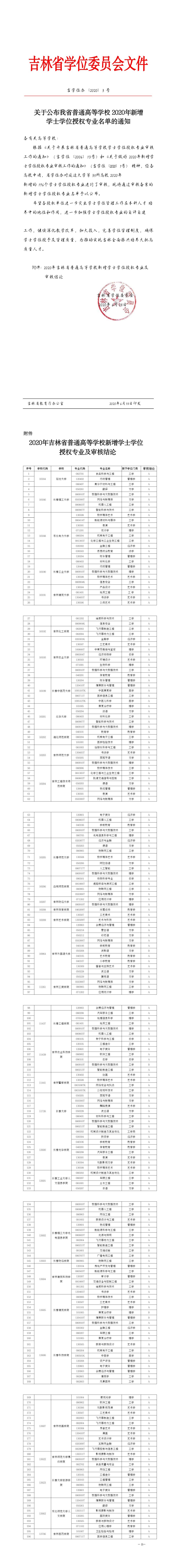 关于公布我省普通高等学校2020年新增学士学授权专业名单的通知