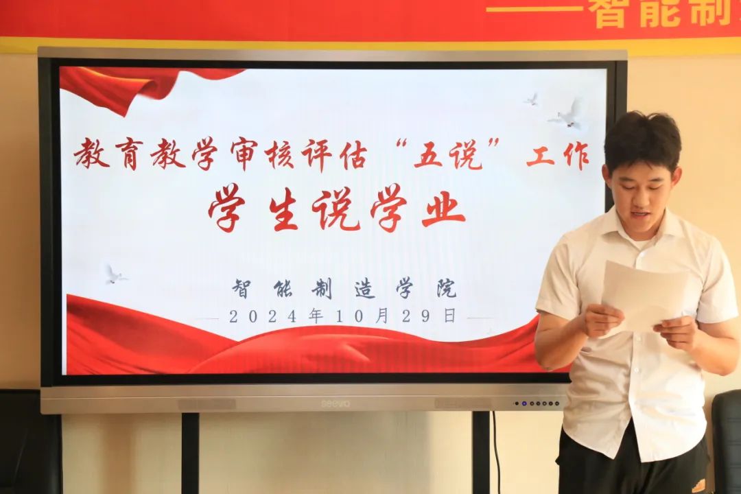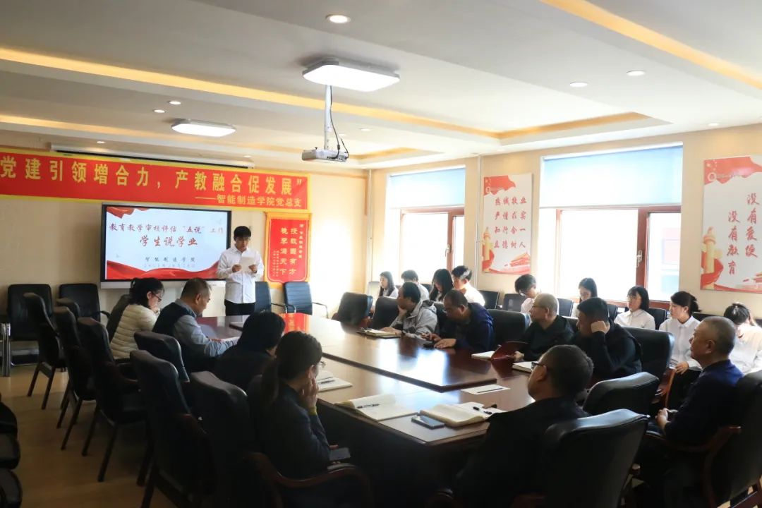 为了进一步提升教育教学质量,总结学生在学业上的收获和认知,我院10月29日在1203会议室成功举办“五说”系列活动之学生说学业。出席本次会议的有智能制造学院院长杨继,党总支副书记张帅,副院长隋庆茹、孙国,各专业主任和辅导员老师们。