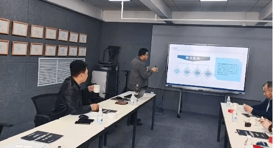 随后,双方围绕实验室建设和校企深度合作展开了热烈讨论。孟总经理分享了企业在汽车教辅具研发领域的最新进展和技术需求,并提出希望与学院共同建设实验室,将企业的实际项目引入校园,为学生提供真实的项目实践环境。初技术总监也指出,企业在发展过程中对高素质专业人才的需求日益增长,期待通过与学院的合作,提前锁定优秀人才,为企业的长远发展注入活力。