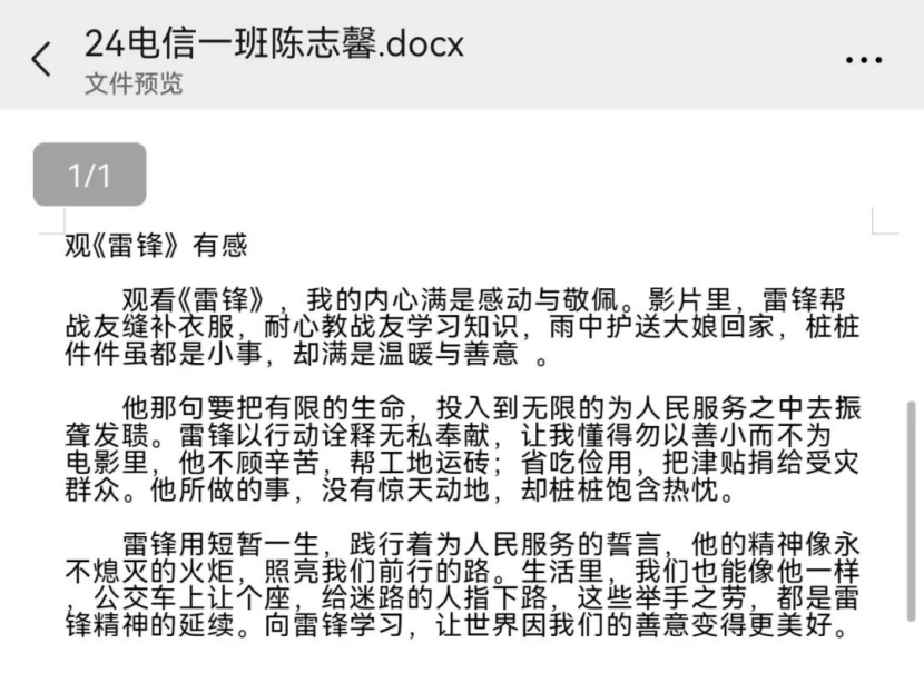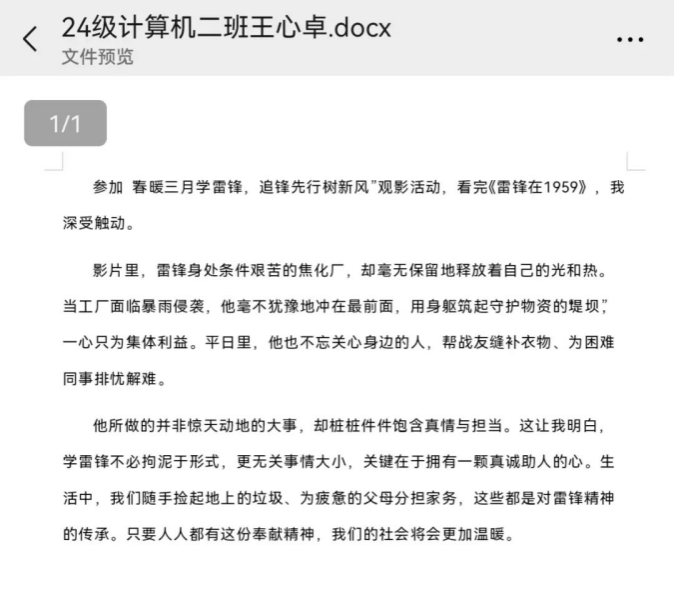 此次“春暖三月学雷锋,追锋先行树新风”主题观影活动,不仅让同学们近距离感受了雷锋精神的魅力,也为弘扬和传承雷锋精神搭建了一个良好的平台。相信在雷锋精神的鼓舞下,同学们将以更加饱满的热情和积极的态度,投身到学习和实践中,让雷锋精神在新时代绽放出更加耀眼的光芒,为构建和谐美好的社会贡献青春力量 。