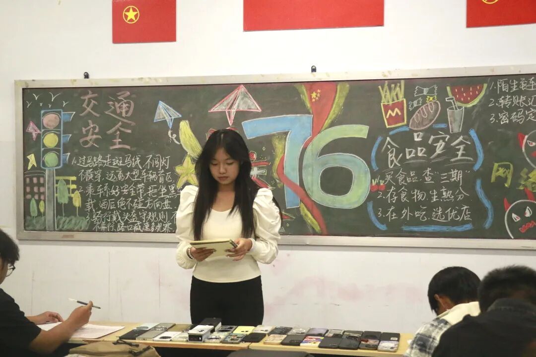 班会伊始,25级辅导员张鹏老师和25级辅导员薛盈欣老师分别围绕国庆假期常见安全风险,从出行安全、消防安全、饮食安全、网络安全、财产安全等多个核心领域展开讲解。通过展示假期期间高发的交通意外、火灾隐患、食品安全事故、网络诈骗等真实案例,以直观易懂的方式剖析各类安全风险背后的诱因与危害,让同学们深刻认识到假期安全并非小事,与个人健康、家庭幸福紧密相关,需时刻保持警惕。