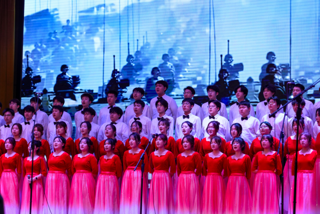 当《如愿》的旋律缓缓响起,同学们用悠扬的歌声唱出了对先辈们的追思与感恩,“山河无恙,烟火寻常,可是你如愿的眺望”,每一个音符都饱含深情,仿佛将听众带回到那段波澜壮阔的历史岁月,看到了先辈们为了国家的独立和民族的解放而不懈努力的身影,让人们深刻体会到今日幸福生活的来之不易。