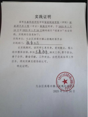 青春因奋斗而闪耀,实践因奉献而精彩!为深入学习和扎实推进乡村振兴建设,智能制造学院积极响应号召,踊跃参与2025寒假“返家乡”社会实践活动,锤炼自我、增长才干、担当奉献。