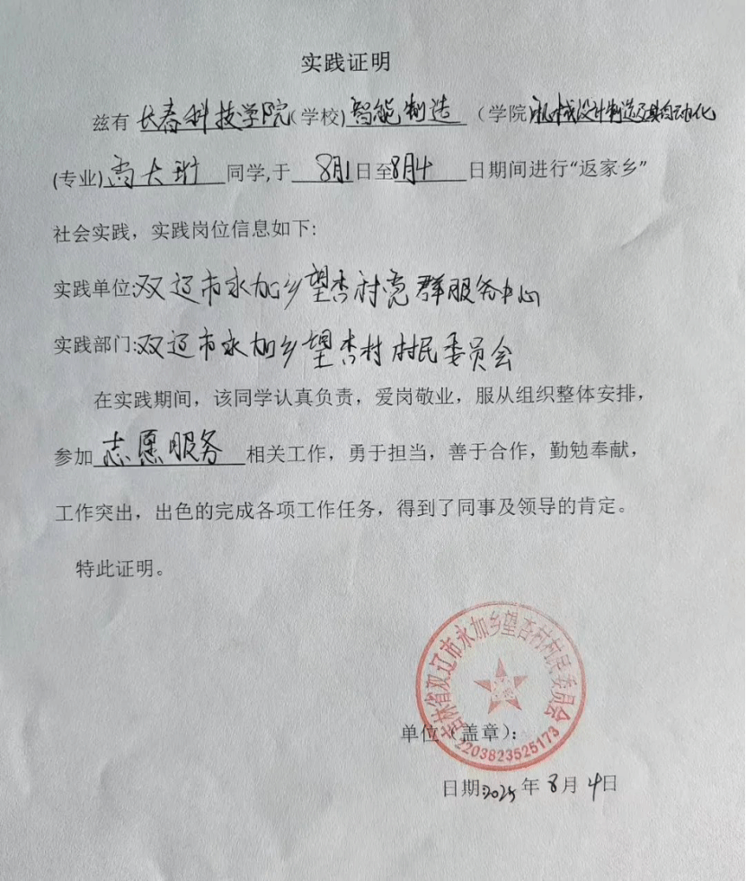 这次实践让我深刻体会到“知者行之始,行者知之成”的内涵。家乡的热土给了我成长的养分,而我也将以更坚定的步伐,把论文写在祖国大地上,让青春在奉献中焕发绚丽光彩!