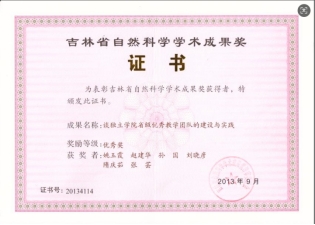 (6)2014年《计算机组成与结构网络课程》获吉林省高等学校教育技术成果评比三等奖。