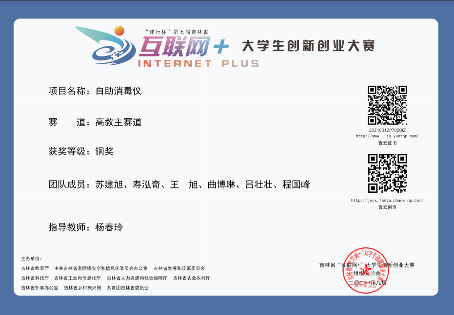 专业一贯注重加大学科竞赛引导、扶持及培训力度,鼓励师生积极参加相关学科竞赛,通过比赛的锻炼提高专业学术水平,取得了卓有成效的成果。先后获得大学生创业计划“挑战杯”大赛省级二等奖2项;“互联网+”大学生创新创业比赛省级二等奖1项、三等奖4 项;全国大学生工程训练综合能力竞赛吉林省选拔赛三等奖3项;吉林省大学生电子设计竞赛二等奖1项、三等奖2项;申报大学生创新创业训练项目 5项,其中国家级2项,省级3项。丰富多彩的科技创新活动为大学生的创新能力培养搭建了平台。