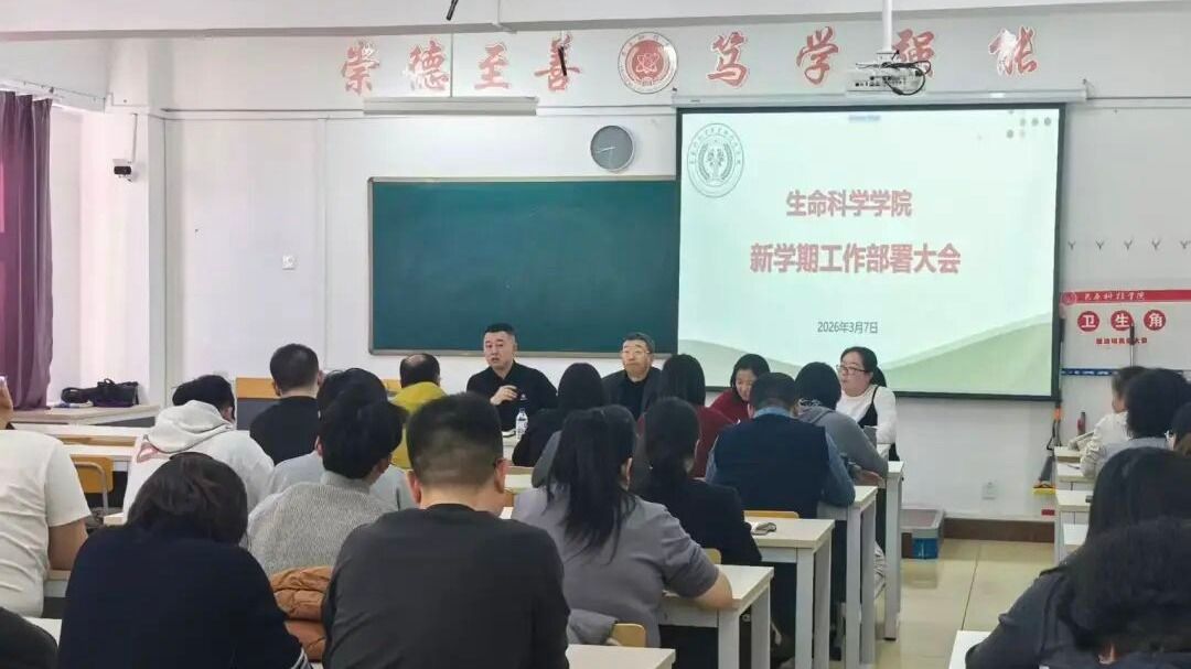 为明确新学期工作目标,统筹部署各项重点工作,凝聚全院发展合力,3月7日,生命科学学院在4513教室召开新学期工作部署大会。学院院长李国江、党总支副书记张帅、科研副院长唐玉娇、教学副院长尤丽新及全体教师参会,会议由院长李国江主持。会议上,李国江院长对学院2025年的工作成果进行了全面总结。过去一年,学院以党政联席会议为重要依托,全年共召开会议15次,党建引领作用得以充分凸显,在党建、教学、科研、学生工作等多个领域均取得显著成效。...