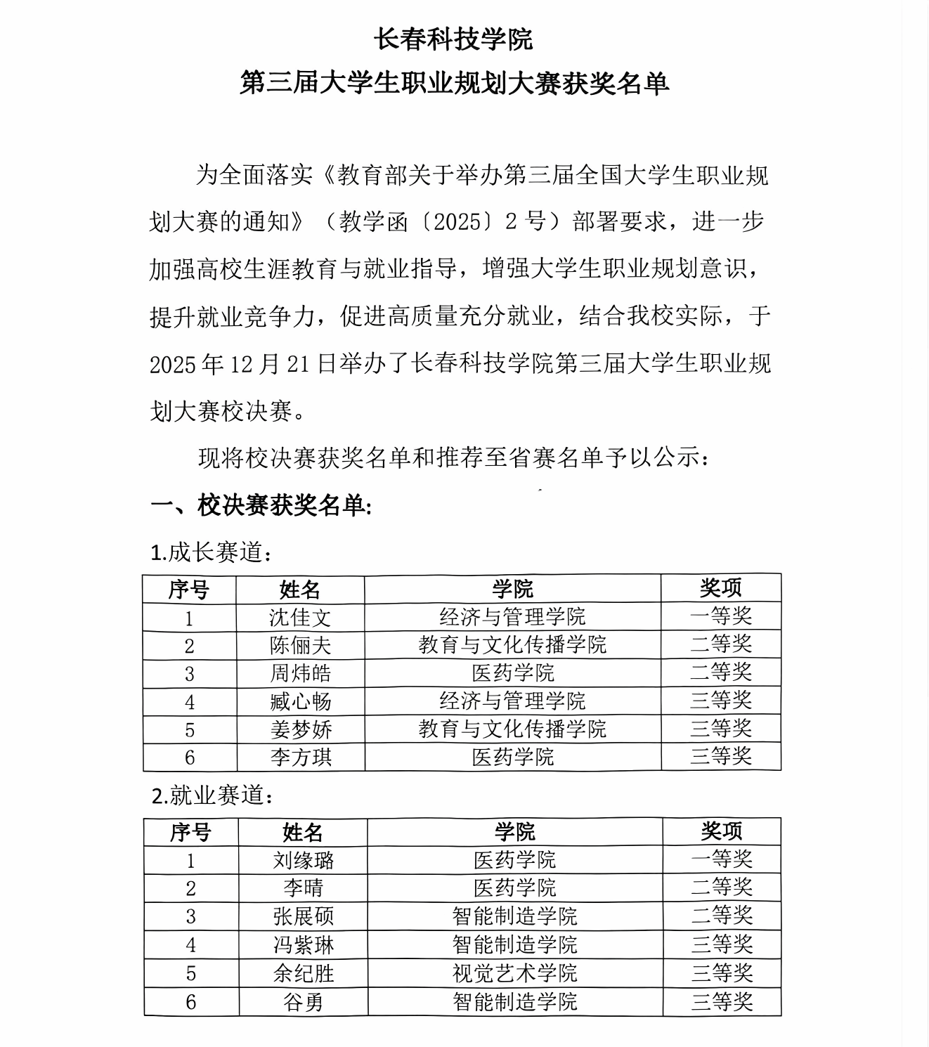 长春科技学院第三届大学生职业规划大赛获奖名单.pdf