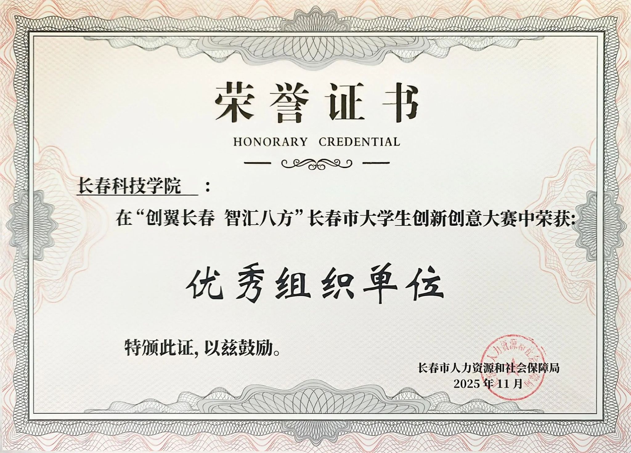 鉴于学校在项目动员组织、遴选培育以及赛事服务保障等各个环节的出色表现,大赛组委会授予长春科技学院“优秀组织单位”荣誉称号。这一集体荣誉的获得,是对我校在搭建创新创业平台、系统化孵化学生项目过程中所付出努力与取得成效的高度肯定。