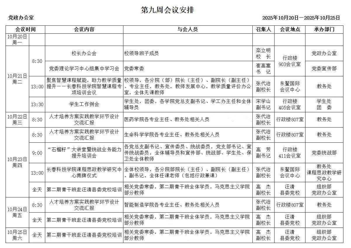 2025-2026学年第一学期第九周周表