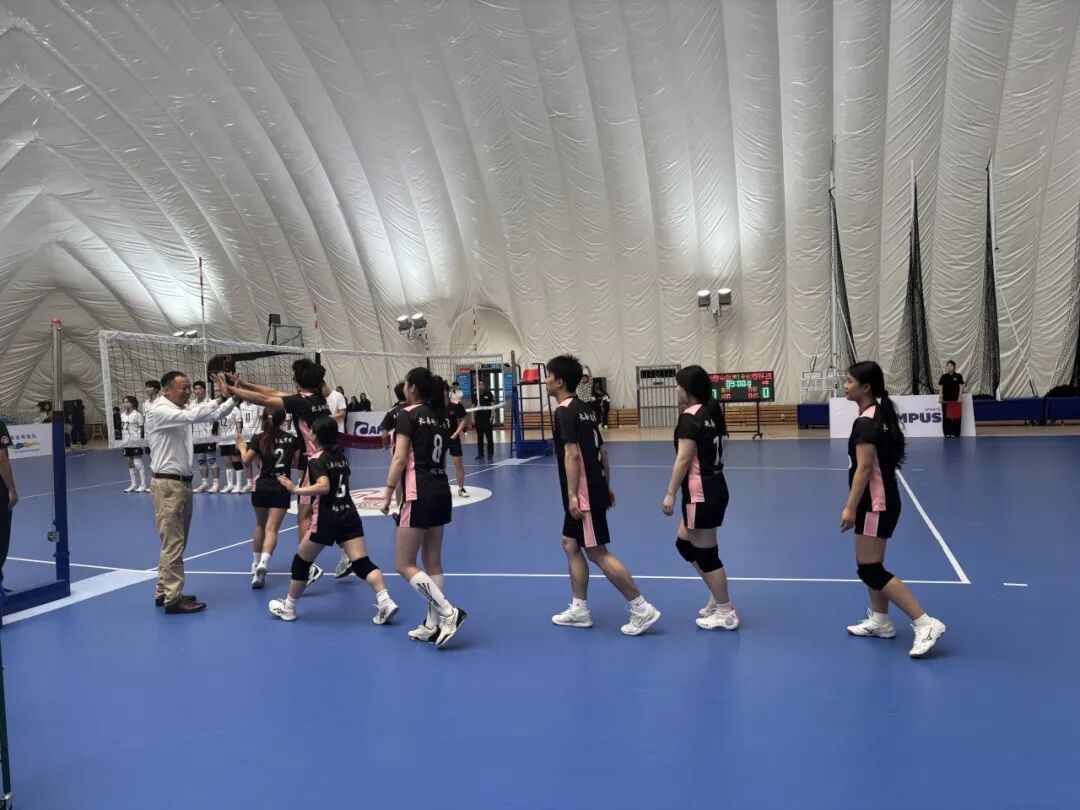 比赛现场,气氛热烈非凡,各参赛队伍配合默契,发球、接球、扣球,每一个精彩瞬间都引发观众阵阵欢呼与掌声,学校和球队员们更是团结一心,不畏强手。在小组赛阶段,他们以精湛的技术和灵活的战术配合,一路过关斩将,面对实力强劲的对手,他们更是沉着冷静,每一分都奋力拼搏,每一局都全力以赴,多次上演精彩绝伦的攻防对决,赢得了现场观众的阵阵喝彩。他们在赛场上所展现出的顽强斗志、尊重对手的体育风尚以及永不放弃的拼搏精神,不仅充分展现了出色的个人能力,将团队协作精神发挥得淋漓尽致,还深深感染了在场的每一个人,并充分体现了我校学子的综合素质和“友谊第一,比赛第二”的崇高体育道德。