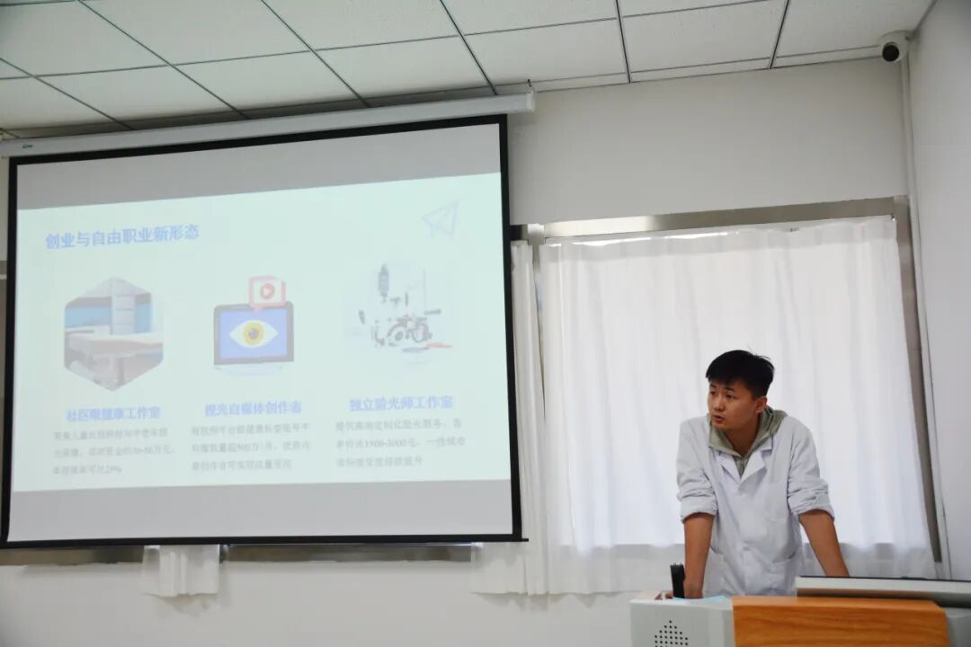 活动伊始,刘博老师介绍讲座核心价值与流程,简要分享了他的从业经历,随后播放“眼视光行业发展”短视频,以直观场景引发同学们对行业的关注,快速进入讲座状态。